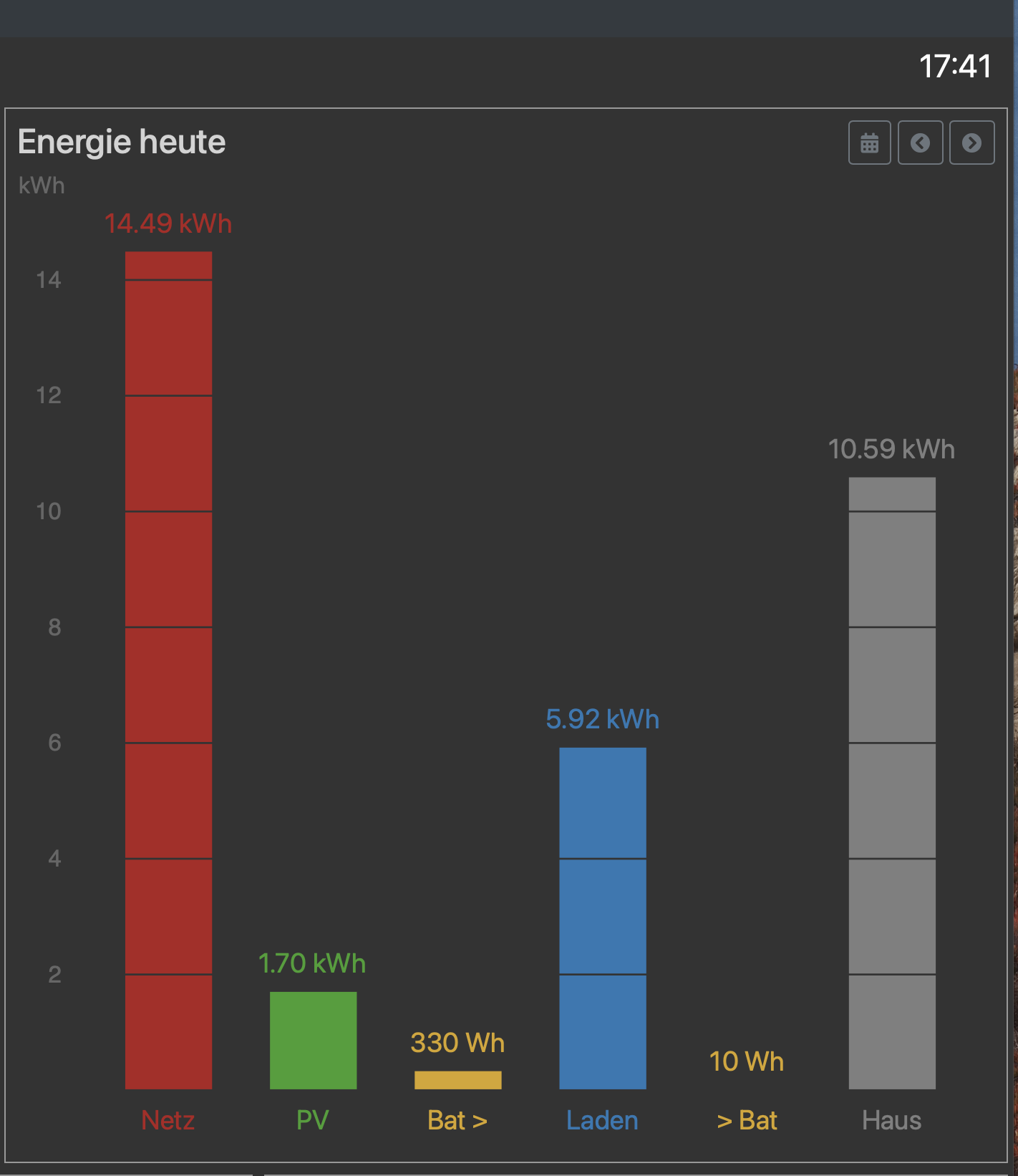 Unter Tagesansicht 11,06 kWh. (18:17)