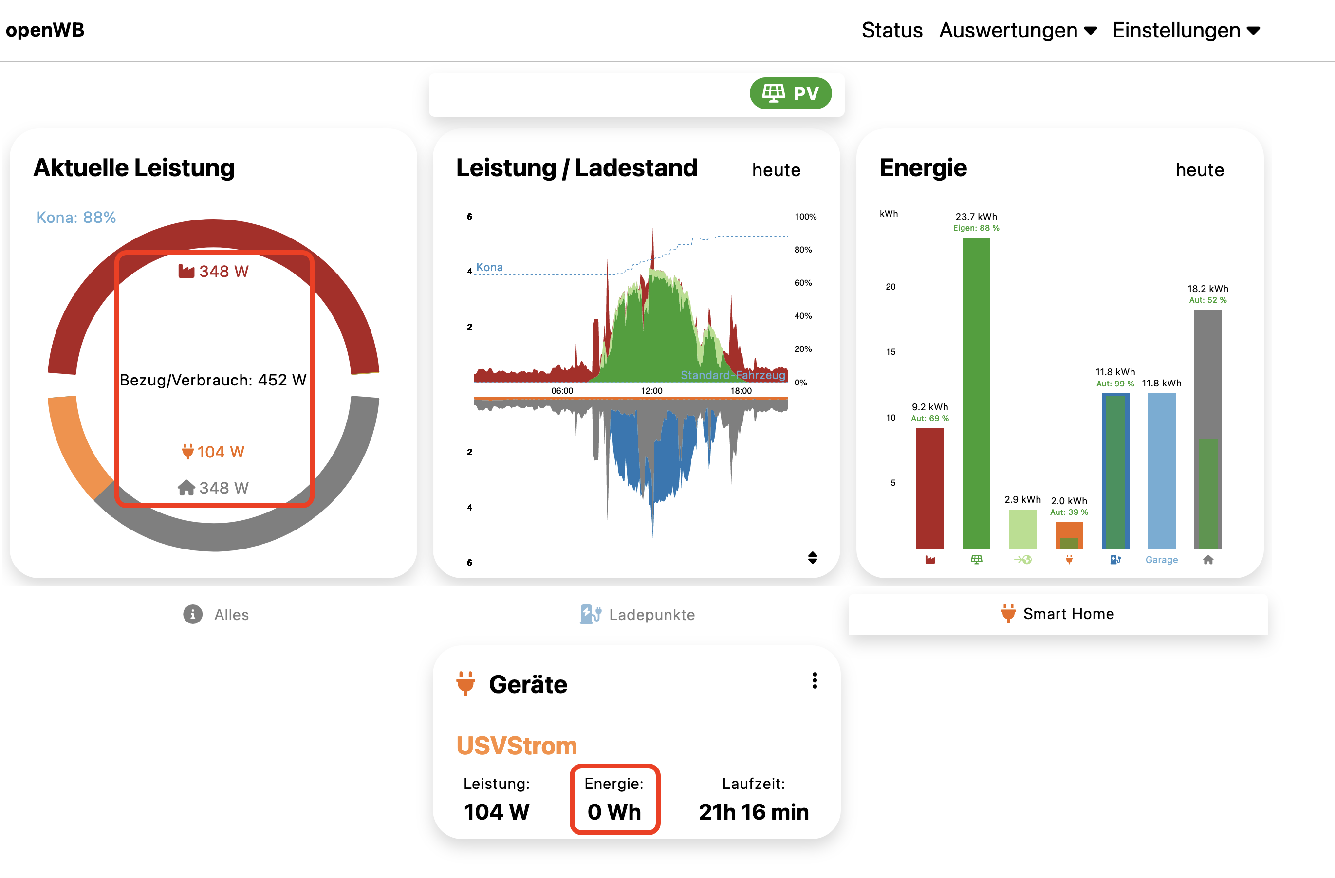 1. Im Dashboard wird mir unter "Aktuelle Leistung" das SmartHome Gerät zu meinem Hausverbrauch hinzugezählt. Das stimmt aber nicht. Die SH Komponenten ist Teil meines Hausverbrauchs. Im Standard Theme wird es korrekt angezeigt.