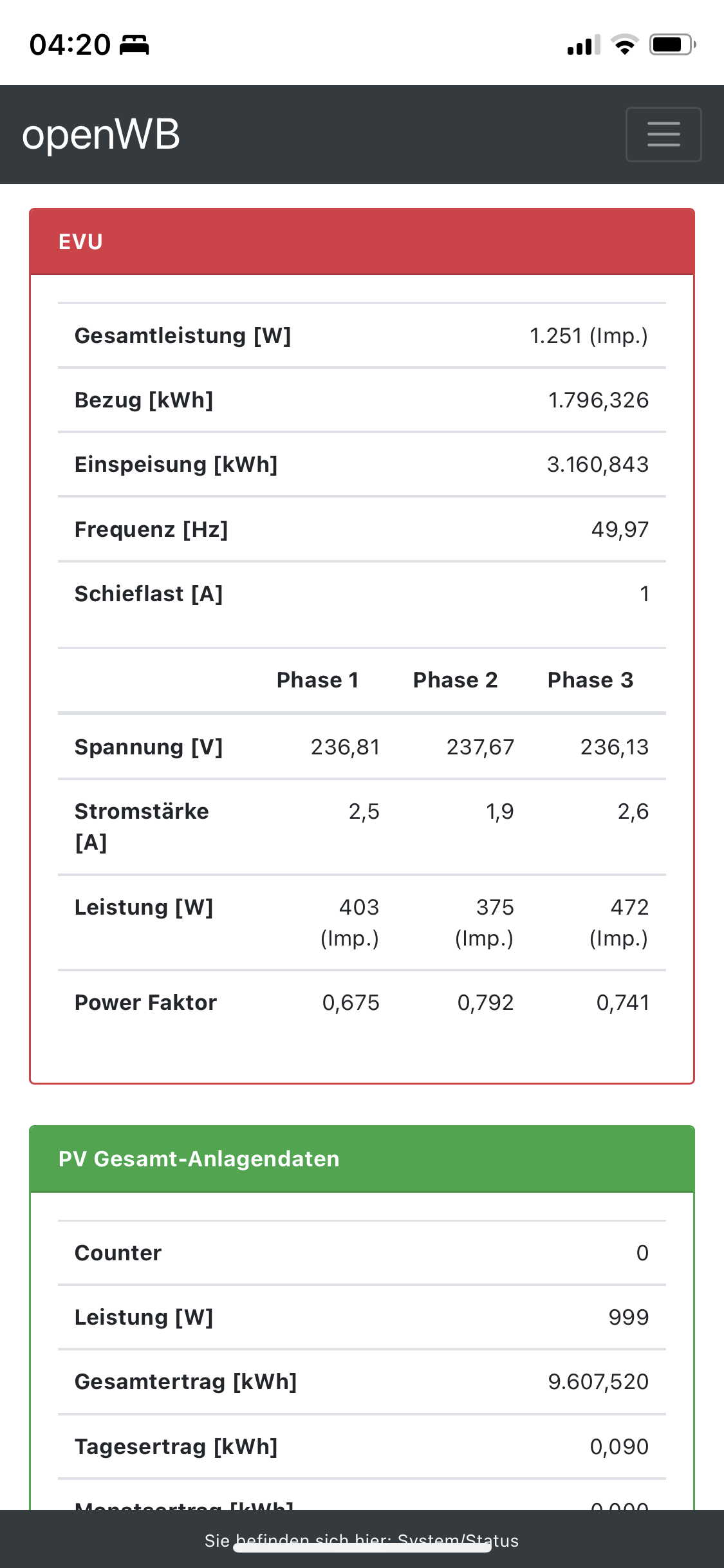 Zur Ergänzung, so sehen die Werte bei der OpenWB unter Status aus: