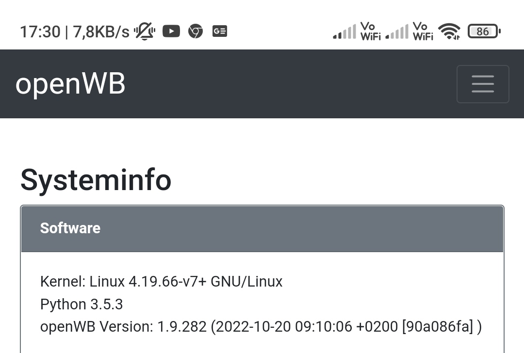 (openWB Version: 1.9.250 (2022-01-14 16:31:53 +0100 [b8e58965] )