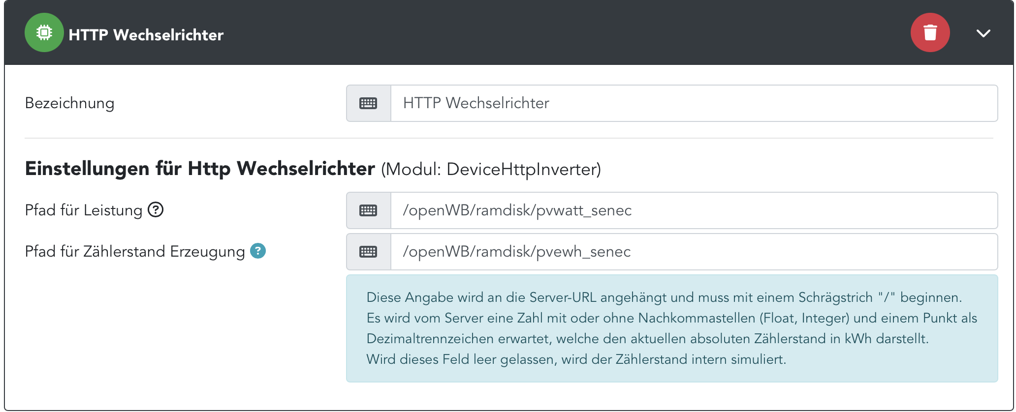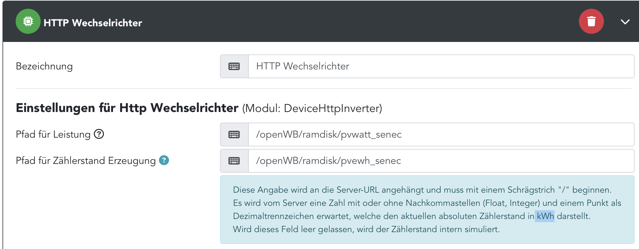 Der JSON WR Ertrag wird durch openWB simuliert, die HTTP WR Werte ausgelesen. Die Simulation für den JSON WR scheint hier mit Wh zu rechnen! Da laut HTTP WR Modulbeschreibung ausdrücklich kWh erwartet werden, habe ich extra das senec python script auf kWh umgestellt.