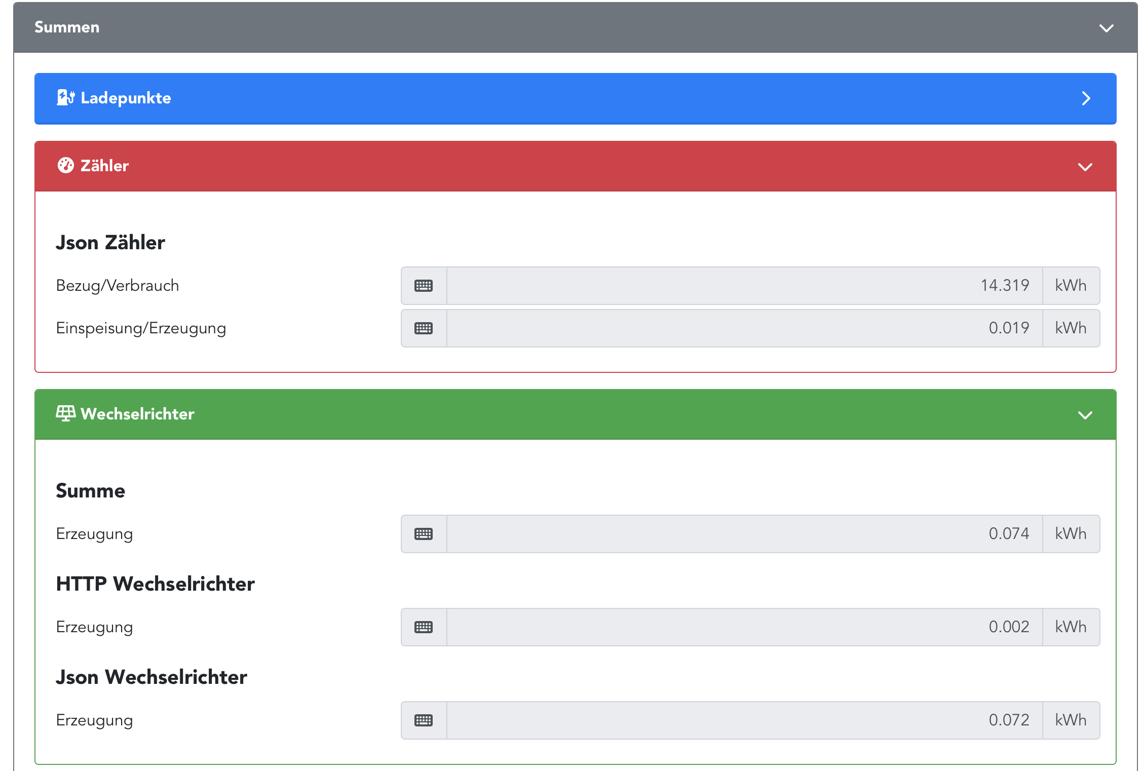 Die Zählerstände der beiden WR (HTTP u. JSON simuliert) werden im Status auch korrekt aufsummiert.