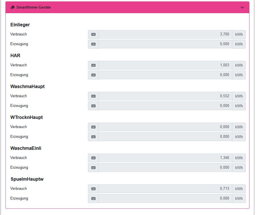 Die Geräte kommen noch mit in das Diagramm auf der Hauptseite und werden auch dort analog zu den Ladepunkten angezeigt. Voraussetzung dafür ist aber die komplette Überarbeitung der Hauptseite, die ich kommende Woche nach meinem Urlaub weiter umsetze.