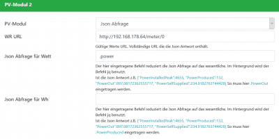 habe nun endlich mal versucht den 1pm als 2. PV- Modul unter "Json Abfrage" einzubinden. Leider bislang ohne Erfolg.