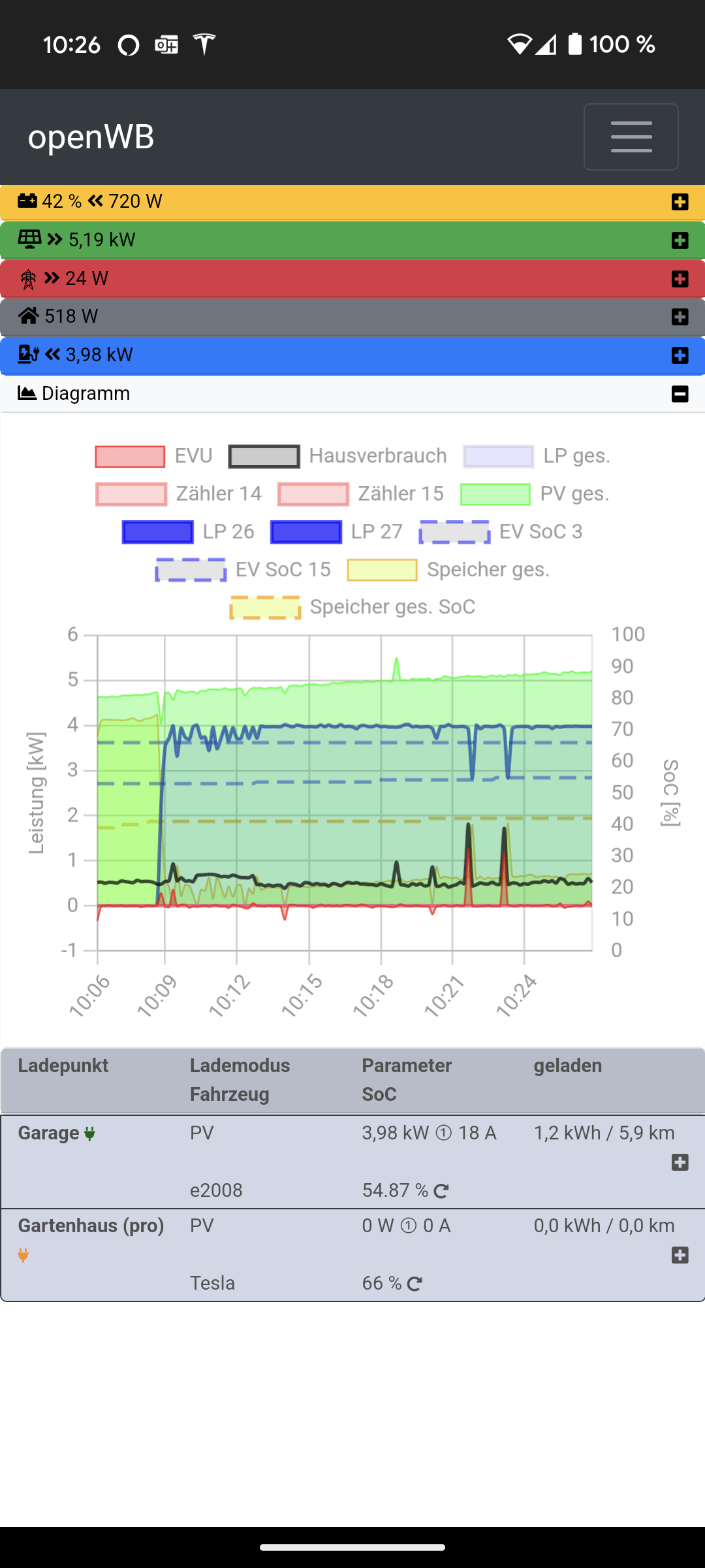 15,2kWp SMA (SB4000TL-21, SB3.0, STP6.0-SE + BYD HVS, EnergyMeter), openWB Standard+, openWB Pro, Smart #1 (ersetzt den e2008), Tesla Model Y LR.