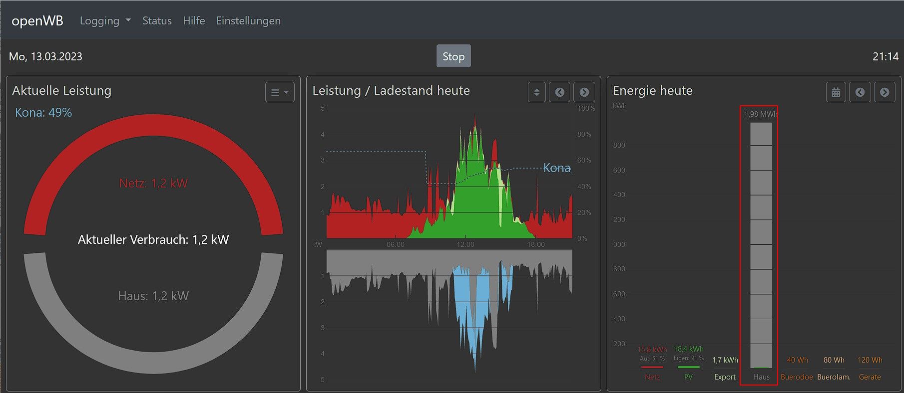 Was aber kourios ist. Sobald ich das LAdekabel anschließe ändert ich die Anzeige unter "Enrgie heute".