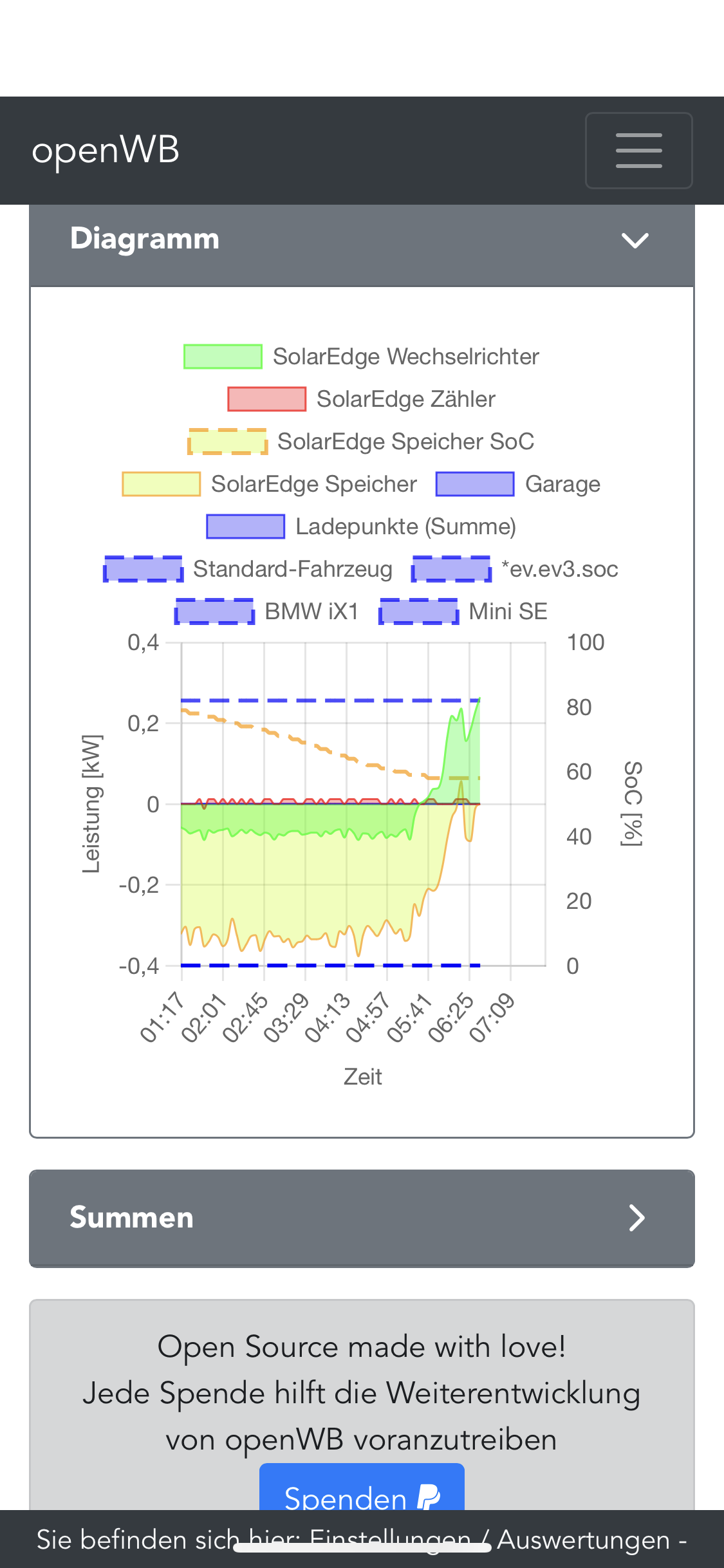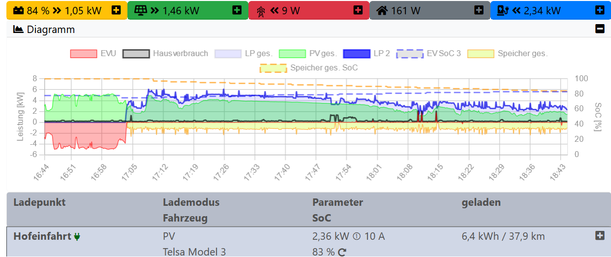 Bei mir im Beispiel ist es so eingestellt, dass das Auto mit PV und zusätzlich mit 5kW aus dem Speicher geladen werden kann. ( aber nur bis zum Speicher SOC von 70% )
