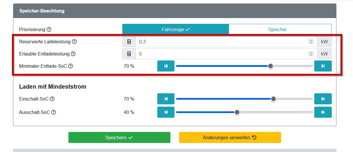 Leider fehlt hier immer noch die Einstellung für den Einschalt SOC des Speichers.