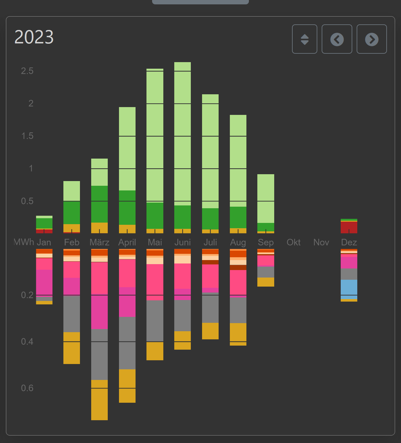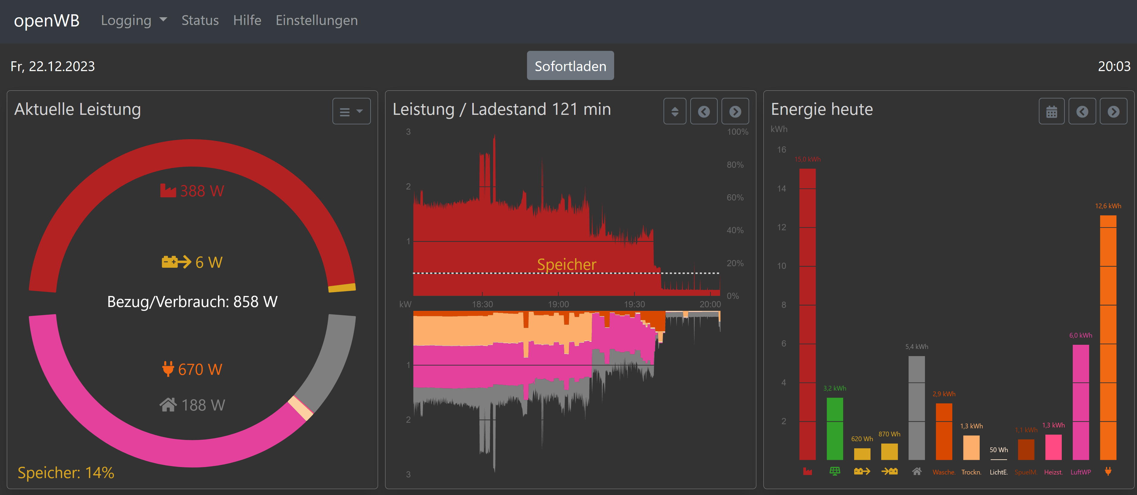 SoC Hausakku, PV Erzeugung, Ladeströme der WB etc. wird alles korrekt angezeigt aus den Datenströmen von SMA und den Batterien.