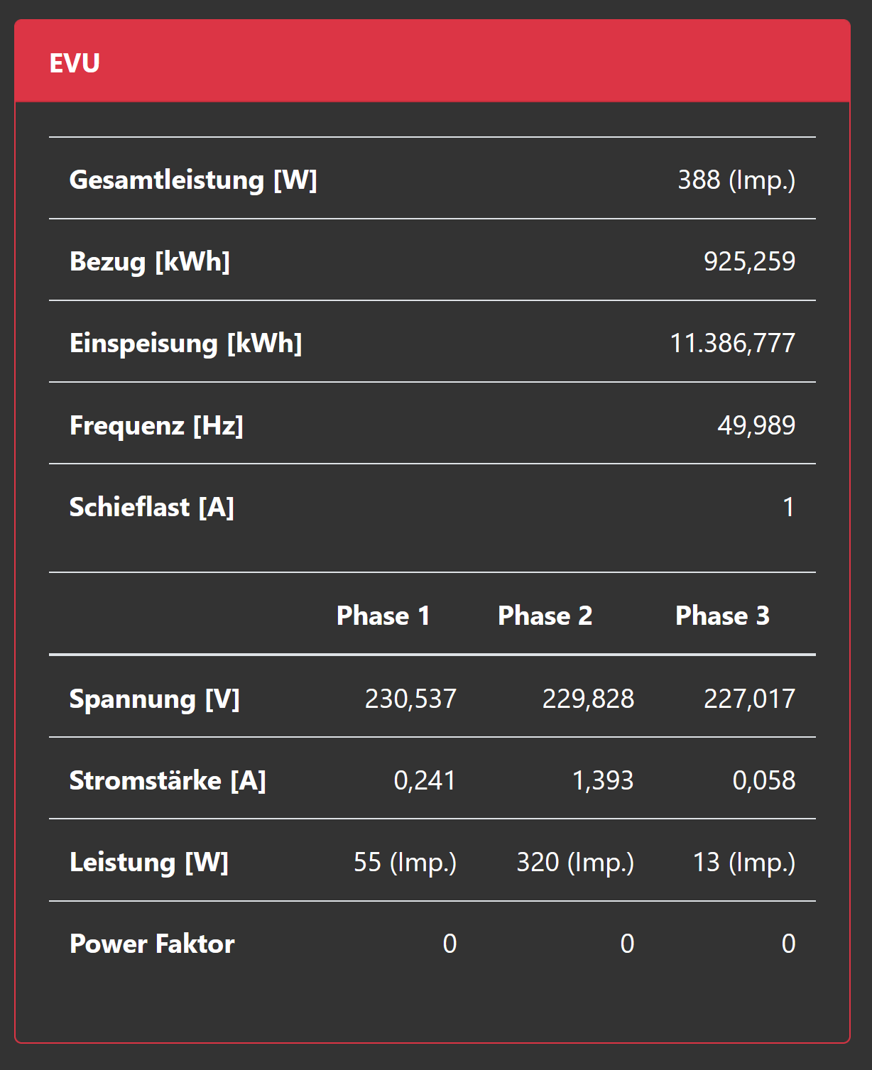 - Weder Frequenz noch Netzspannung aktualisieren sich im Status von LP1. Von LP2 werden die Werte noch aktualisiert.