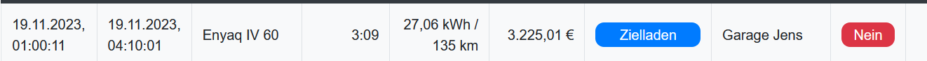 Beispiel 19.11.2023: (Hier waren noch hohe Ladekosten !)