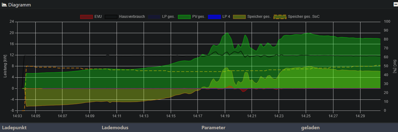 Im Log-Auszug kann man auch erkennen, das Produktion anliegt (P_PV).