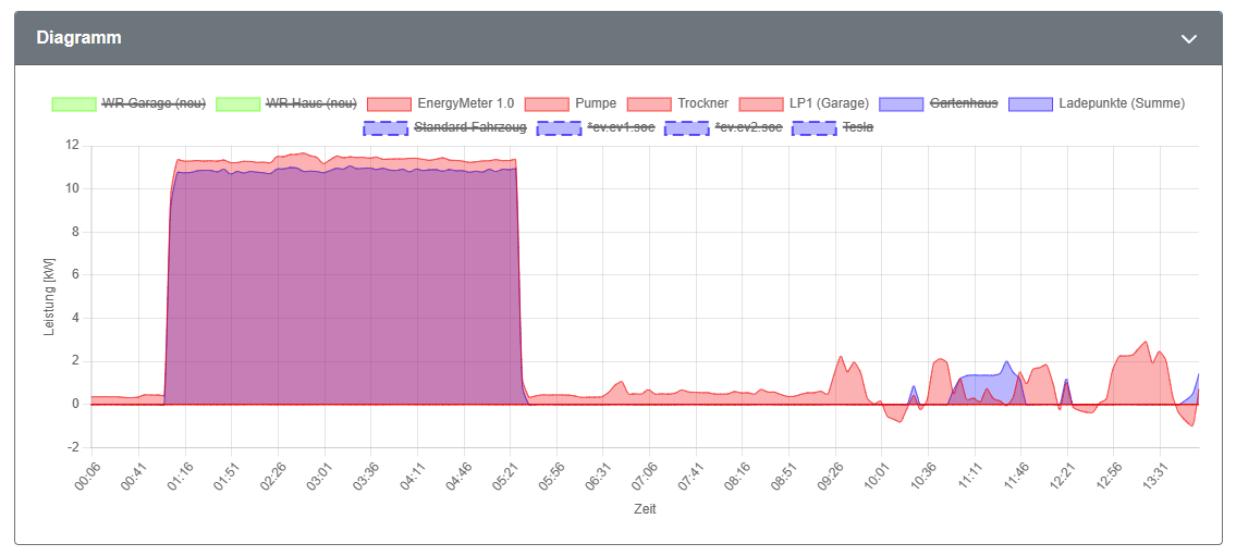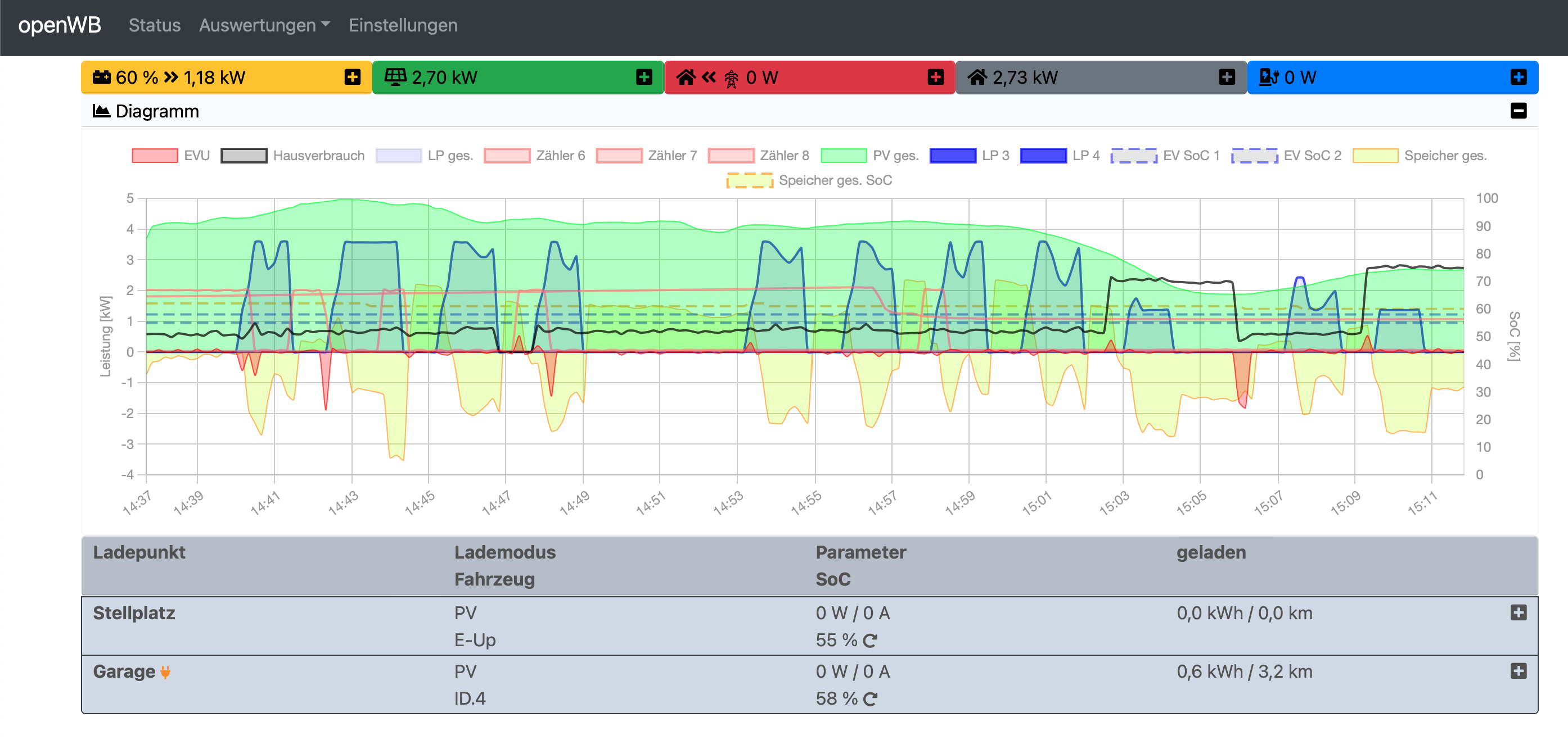 Restliche Struktur ist flach, zwei SMA WR, der Ladepunkt und ein paar HTTP Zähler, allesamt auf er gleichen Ebene. Kein Speicher.