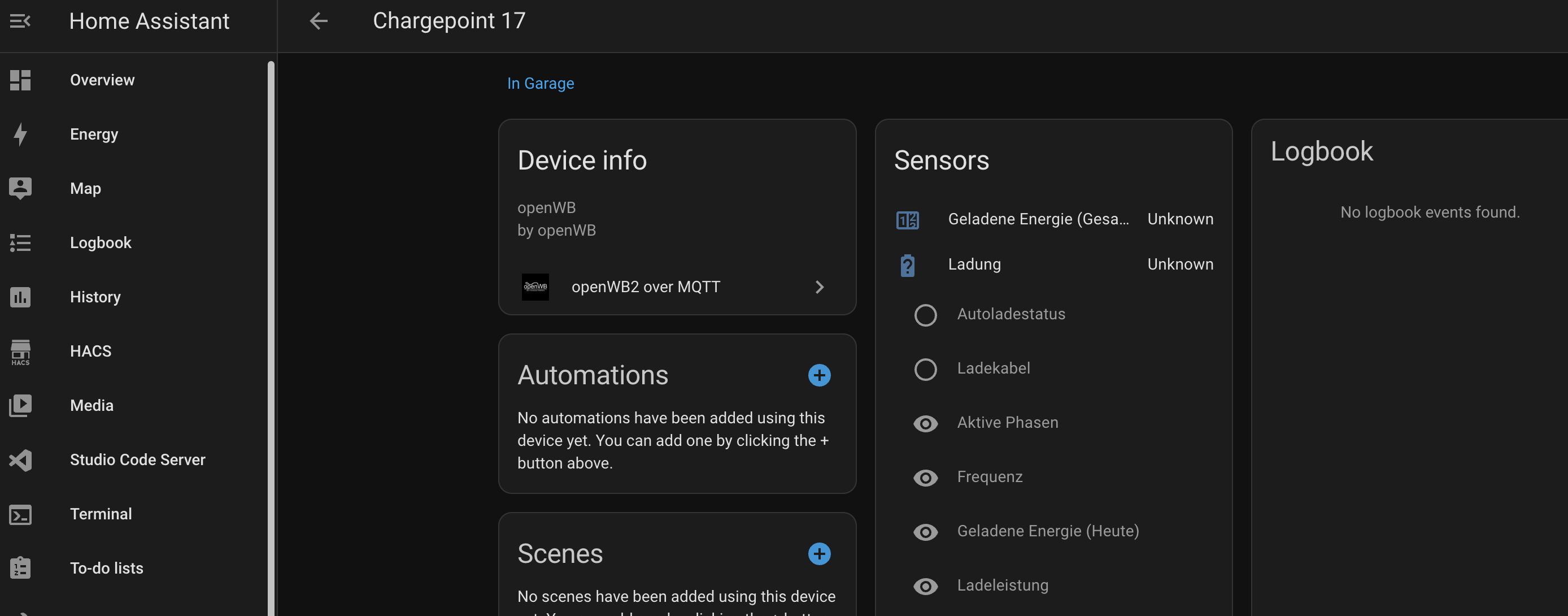 Der Chargepoint, also das angeschlossene Auto, wird allerdings nicht angezeigt.