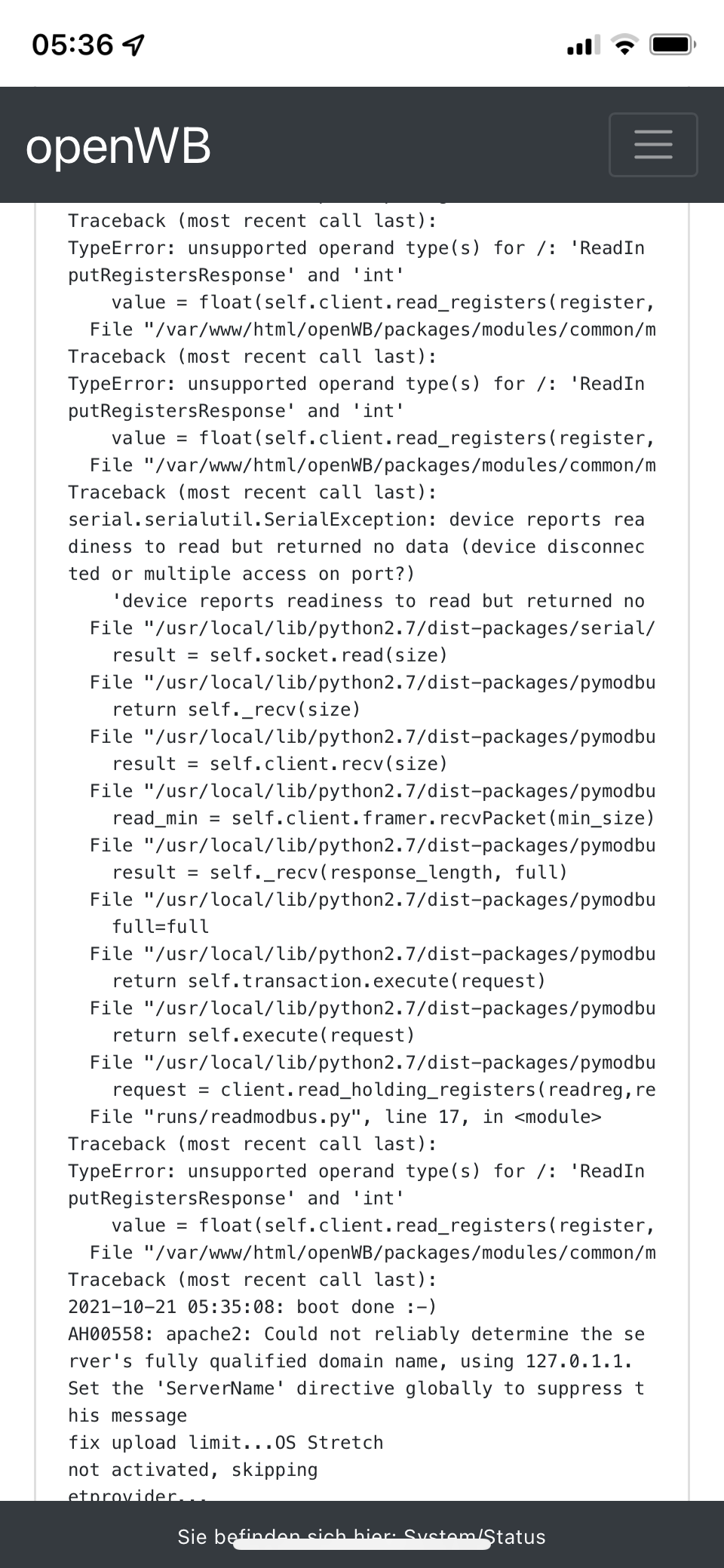 2021-10-20 19:00:11: Ramdisk not set up. Maybe we are still booting. (LV0) at 43 main /var/www/html/openWB/regel.sh