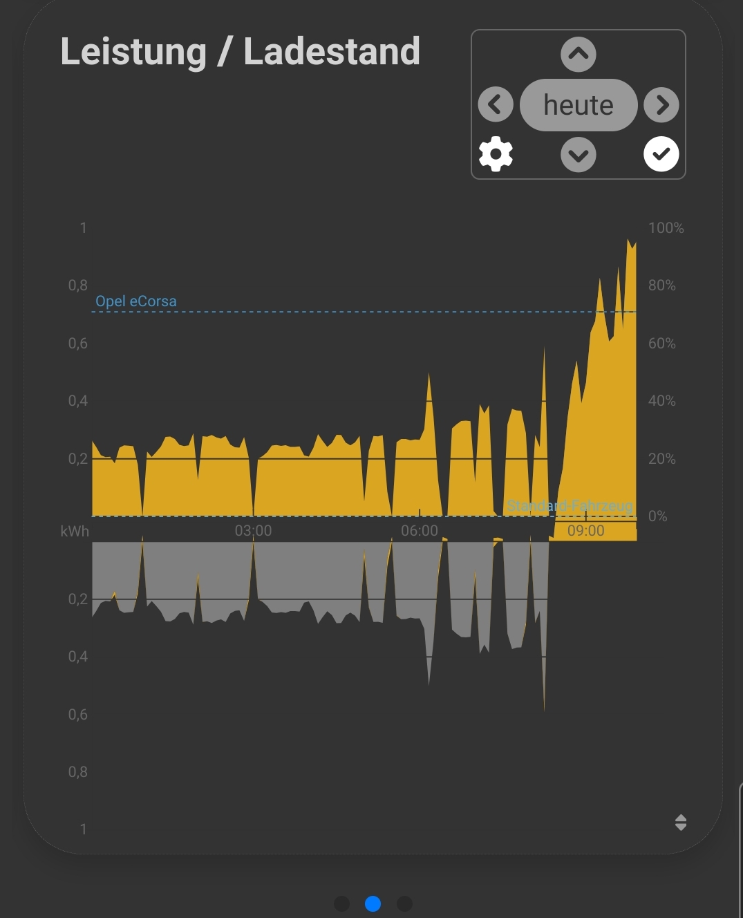 - Wie sehen denn die Tagesgraphen der openWB (Auswertungen=>DIagramme=>Tag) für heute und gestern aus? Ich nehme an, die sind korrekt?