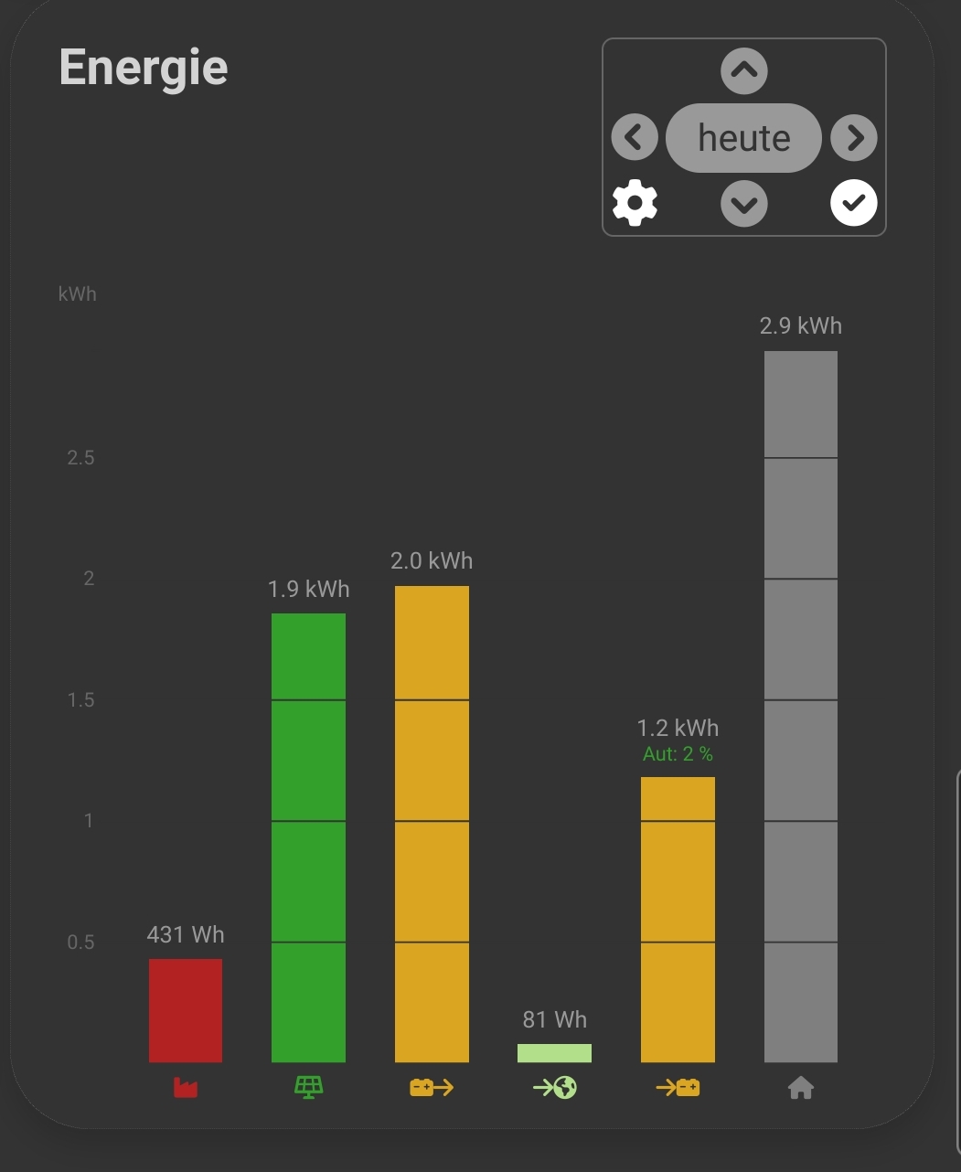 - Abweichungen für SmartHome-Devices vom "wahren" Wert z.B. in der Shelly-App sind derzeit unvermeidlich, da die Tageswerte nur angenähert werden.