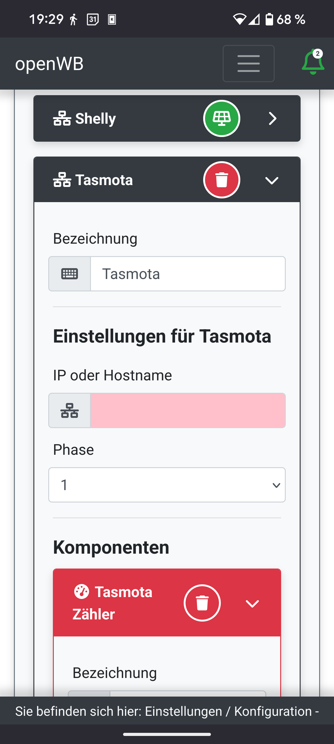 Jetzt muss ich aber bei blöd fragen: funktioniert der Tasmota -Wechselrichter nicht? Anlegen lässt er sich, und als Unterkomponente kann ich einen Zähler hinzufügen?