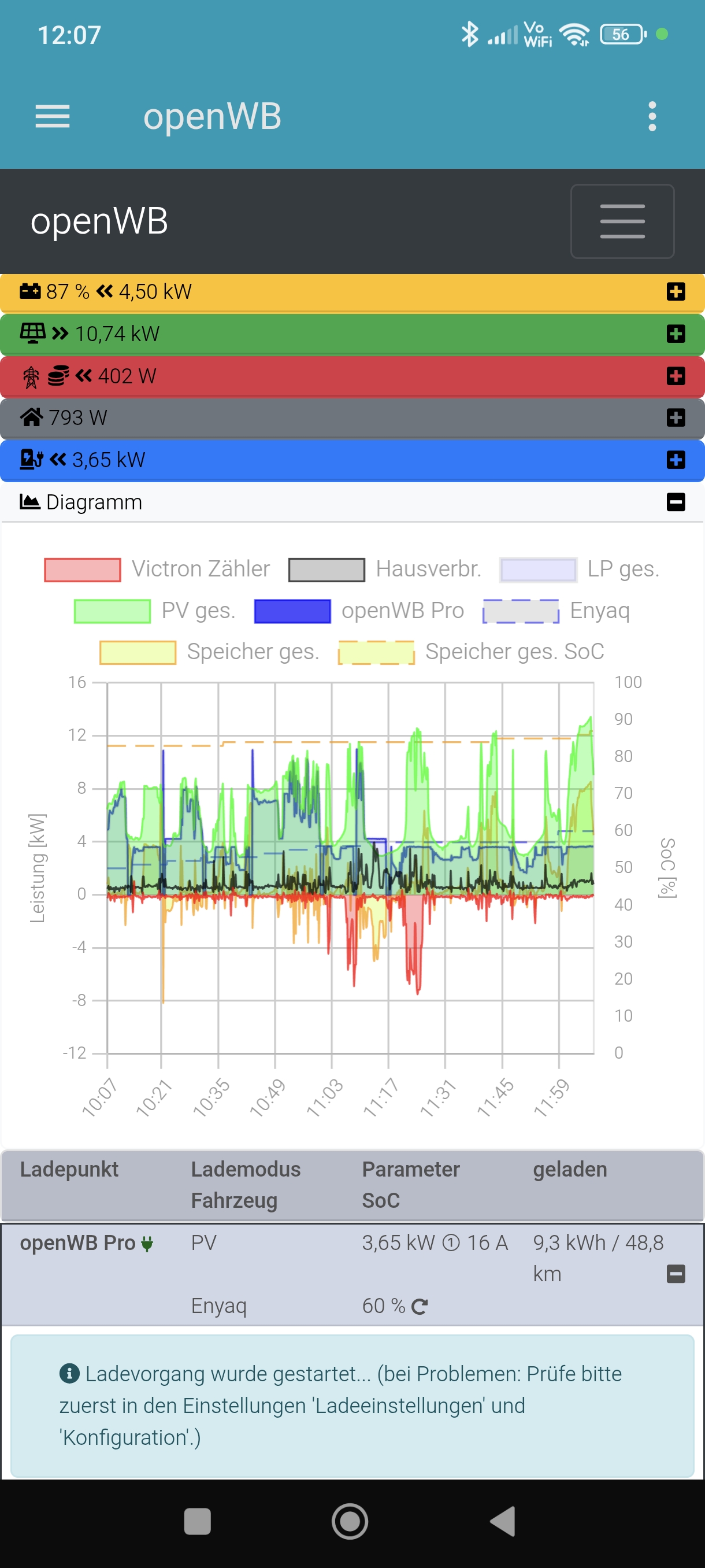 PV: Fronius Symo & Victron MPPT Speicher: Victron Auto: Skoda Enyaq mit ME3.8