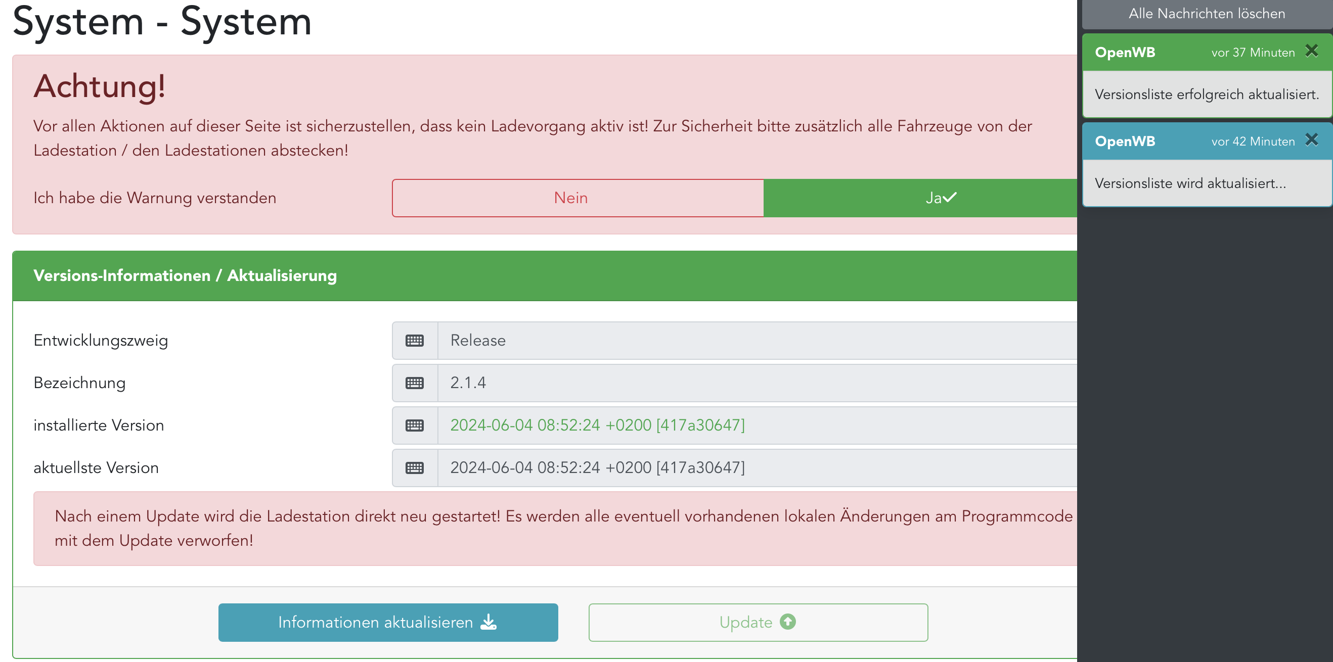 ich möchte gerne mal meine openWB Series 2aktualisieren auf die neueste Version.