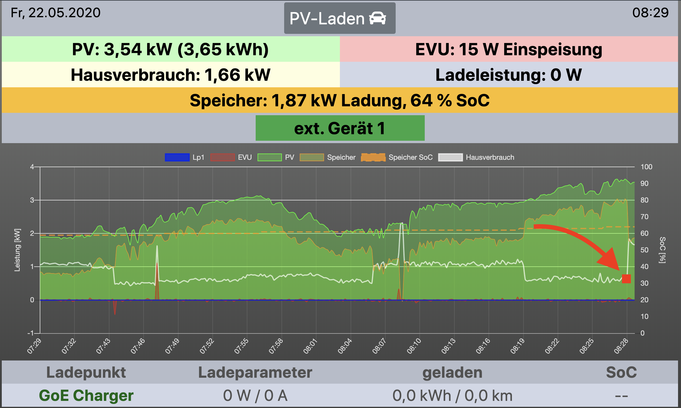 Die PV Einstellungen für Speicher (EV Vorrang / Speichervorrang) wirken sich auch auf den Wert für die externen Geräte aus.