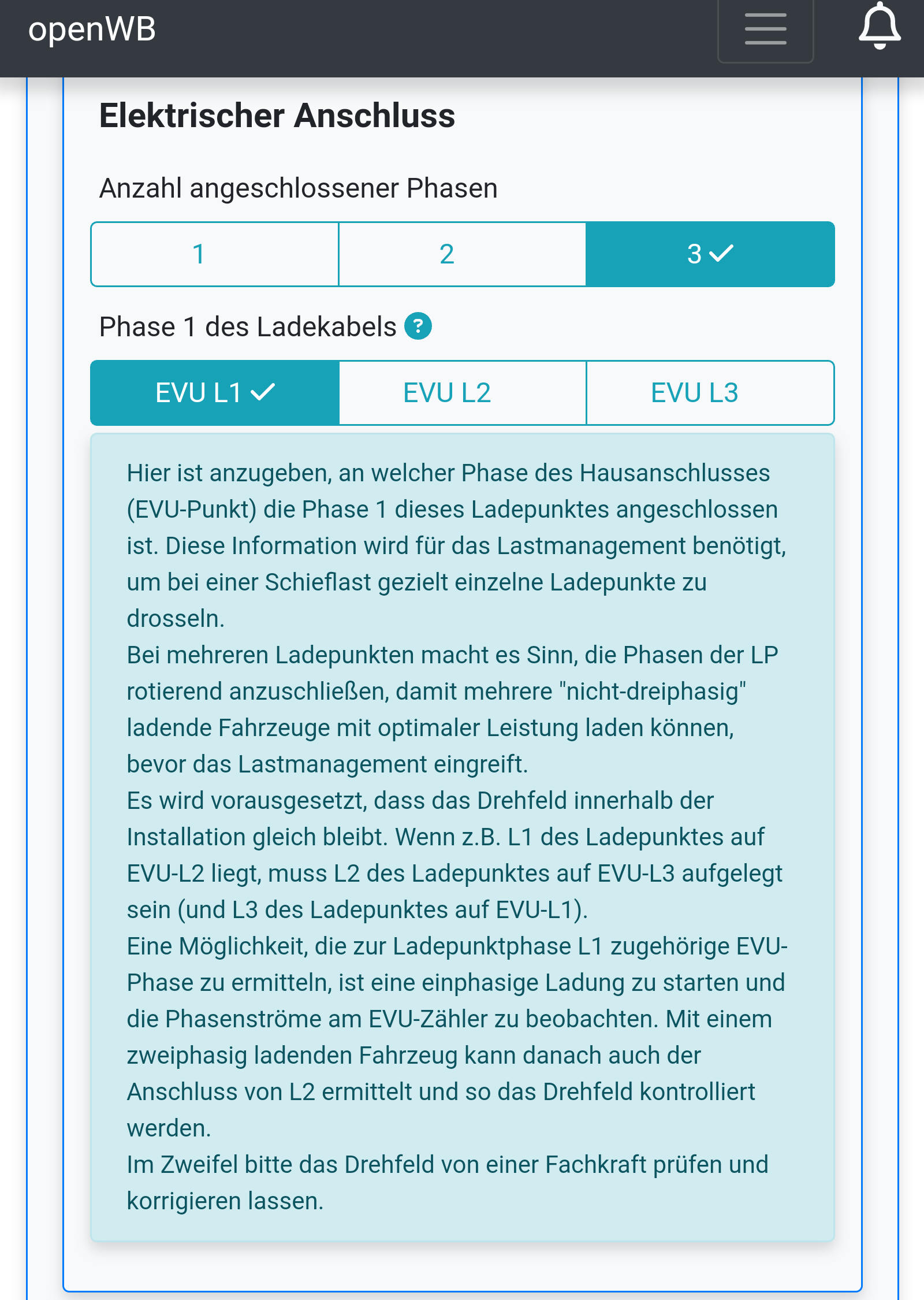Und ja, mehrere openWBs werden mit verschobenen L1 angeschlossen. Das wird dann auch so in der Konfiguration angegeben.