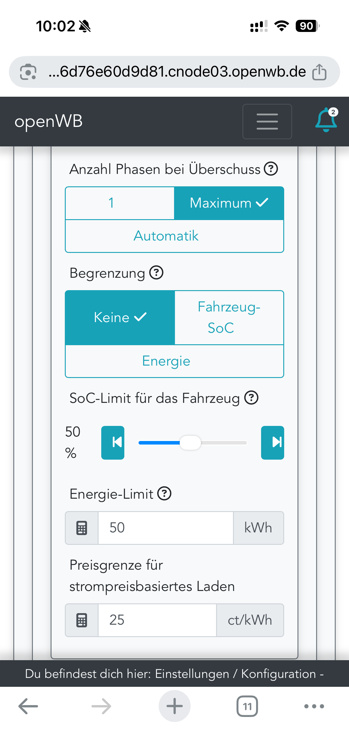 Danke. Mir geht es auch eher um die Begrenzung der Ladeleistung.