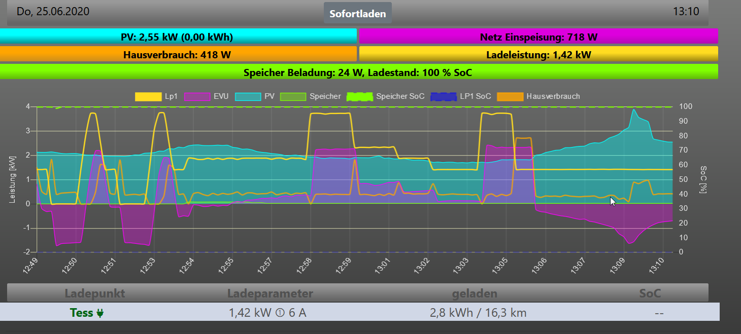 Völlig unabhängig wie schnell ich meine Werte nach liefere, es macht keinen Sinn mit der Ladeleistung von 4 auf 11 kW zu springen, wenn zu dem Zeitpunkt nur 2-3 kW eingespeist werden.