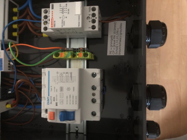 Aus Platzgründen (ich habe nur ein Erdkabel zum Carport und kann nicht darüber hinaus erweitern) wird wohl noch eine weiter Box mit Schutzschalter und Hutschiene im Carport montiert werden müssen.