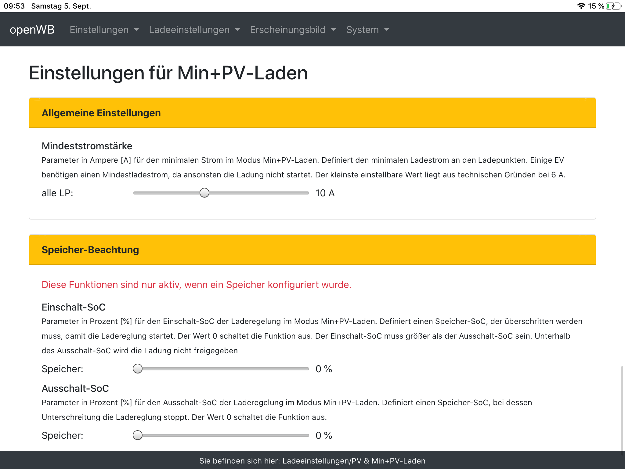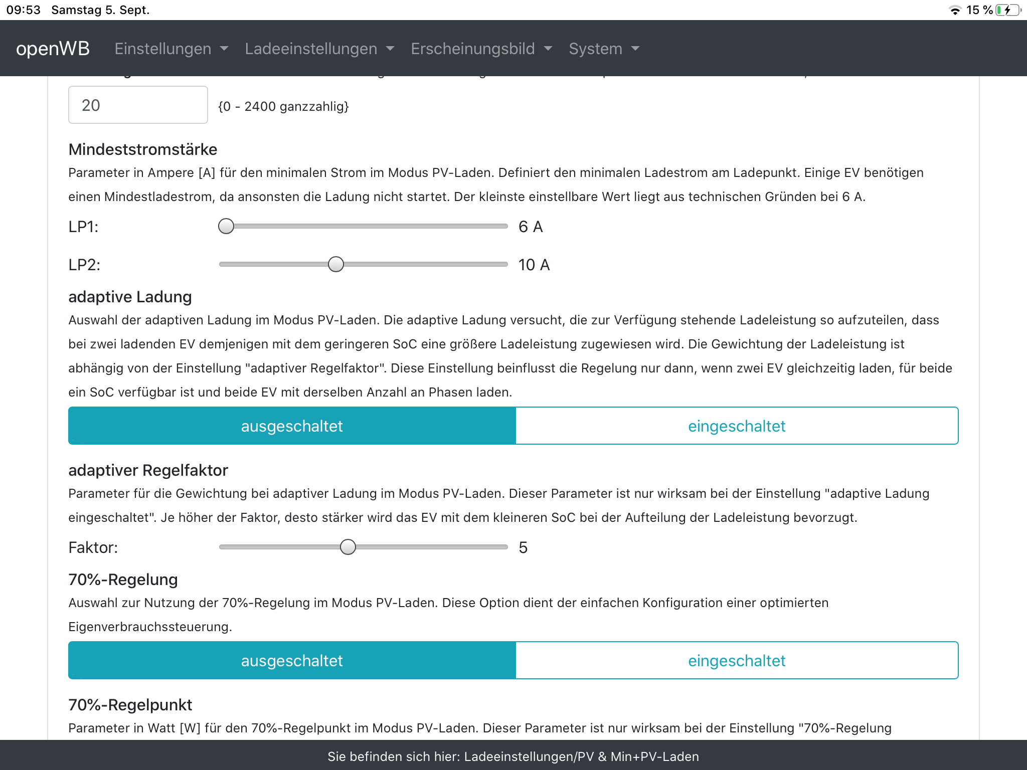 Das war mir nicht bewusst, da ich die Einstellparameter unter PV Laden nicht wirklich nachvollziehen kann. Schon die erste Auswahl des Regelpunktes erschließt sich mir nicht. Ich möchte nur, dass jeder PV Überschuss in die Autos fließt. Was wär hierfür die default Einstellung?
