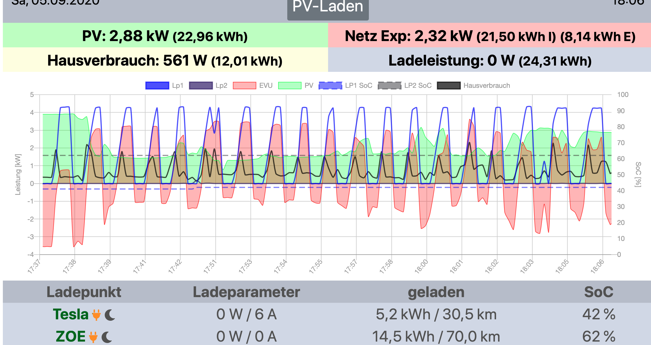 Ich habe nun auf Dreiphasigkeit und 10 A Mindeststrom umgestellt. Die ZOE lädt hin und wieder, aber es sieht so aus als würde der Tesla ihr alles wegnehmen. Auch steht bei der ZOE immer ein Mindeststrom bei Ladungsbeginn von 6A, obwohl ich einen höheren eingestellt habe?