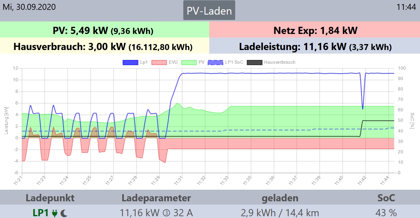 Zum Test habe ich bei EVU Modul den Sunny Homemanager rausgenommen und die konstanten 400 Watt Hausverbrauch stehen lassen. Selbst dann wird wild geregelt mit zum teil 11kW Ladeleistung bei nur um die 4kW PV Leistung. Alles im "nur PV Laden" Modus. Ich bin ratlos.