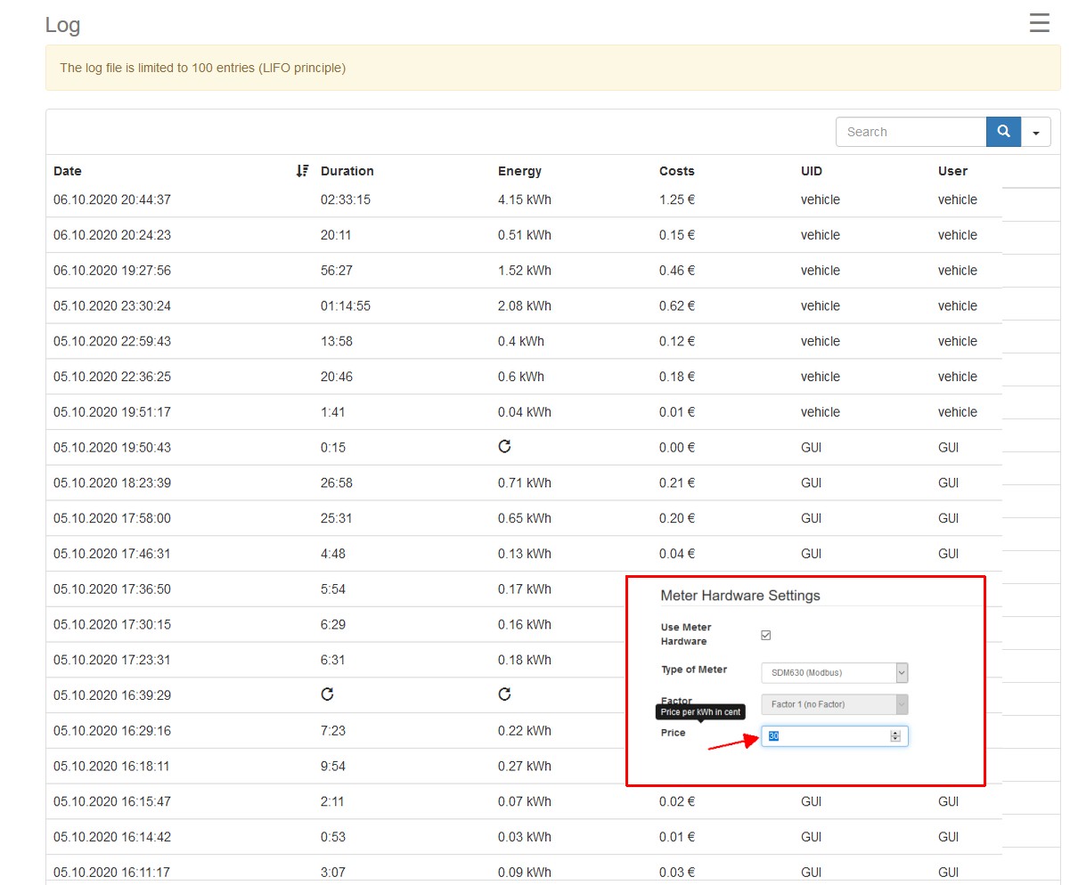 Ganz interessant wäre die Hinterlegung der eigenen Stromkosten bei der Hauptseite die Anzeige "Geladene kwh" den € Preis als Option gleich zu sehen.