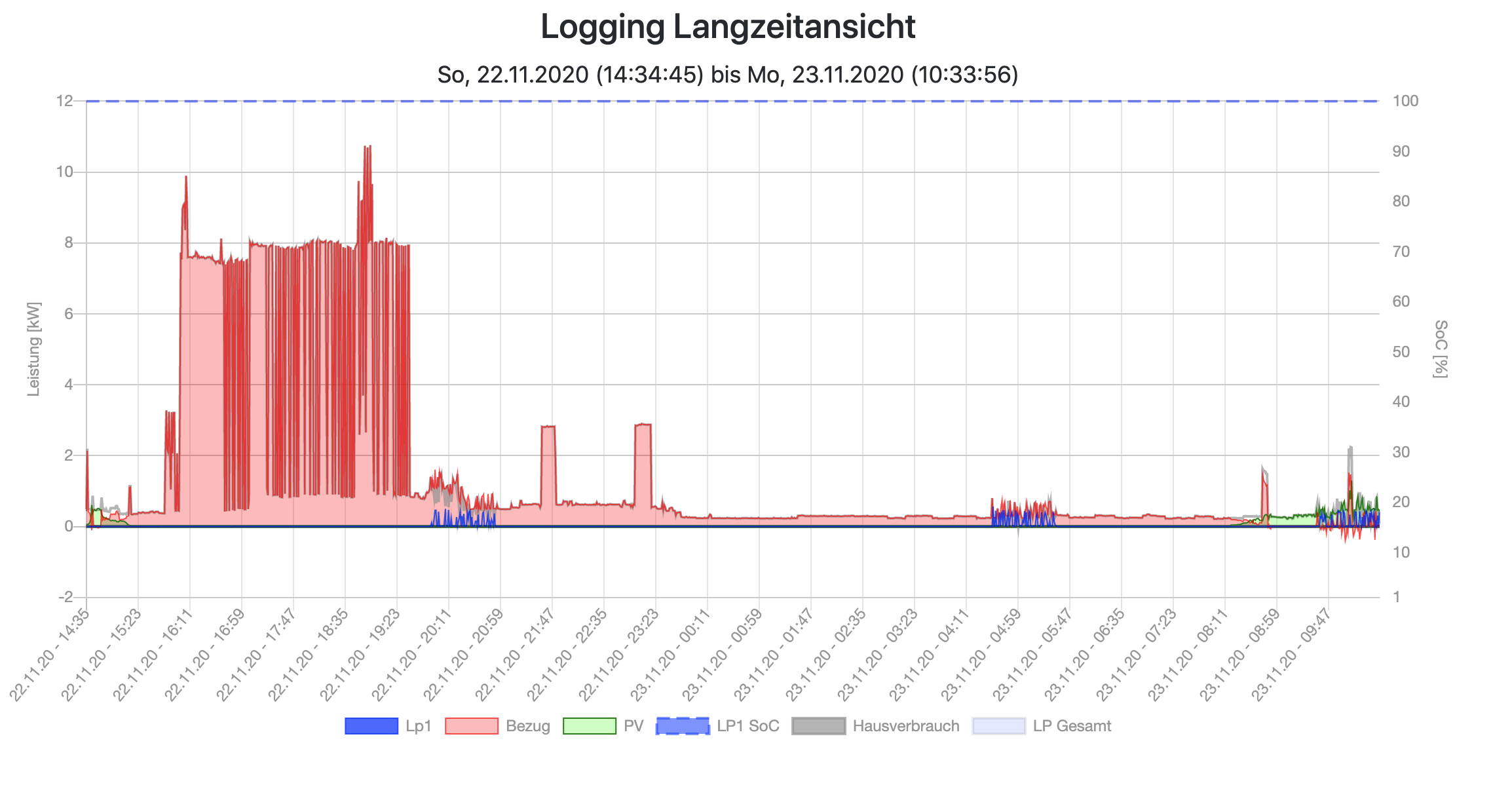 Normalerweise funktioniert die Installation zuverlässig in den verschiedenen Modi. Wenn die openWB allerdings auf 'Sofortladen' steht tritt dieses Verhalten (ohne Eingaben von außen) wiederholt und unregelmäßig auf. Hat jemand eine Idee? Könnte es damit zusammenhängen, dass zwischendrin die Netzwerk / WLAN-Verbindung kurzzeitig abreißt (passiert ja manchmal nachts), und so die einzelnen Teile nicht mehr richtig miteinander kommunizieren?