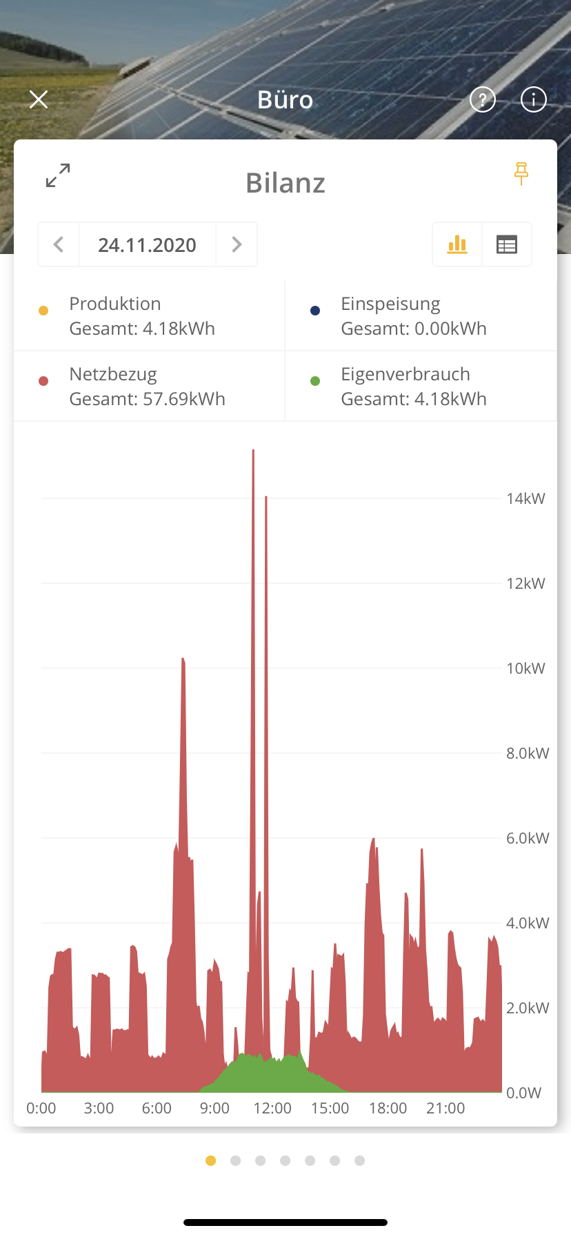 Bei Auswahl der "Langzeitansicht" wird die PV-Produktion mit dargestellt.