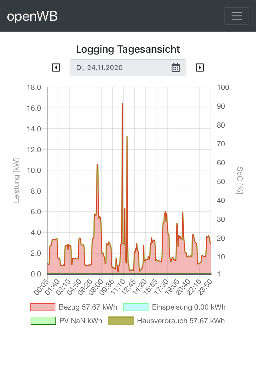 Es ist nur eine kleine Zahl bei mir ganz oben links in der Ecke. Vielleicht übersehen?Loewuppel hat geschrieben: Fr Nov 27, 2020 12:41 pm Meinst Du so? http://192.168.137.56/openWB/ramdisk/pvkwh
