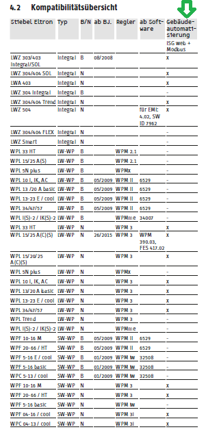 WPL 15 / 20 / 25 . Die möglichen WP sind hier rechts aussen aufgeführt. Die Stiebel Steuerung ist relativ einfach, es wird nur der Wärmepumpe signalisiert in einen höheren SG Ready Modus (Betriebszustand 3) zu schalten. Dann nimmt die Wärmepumpe ein andere Temperaturvorgabe (z.b. 50 Grad Warmwasser, normal 45 Grad) und heizt los.