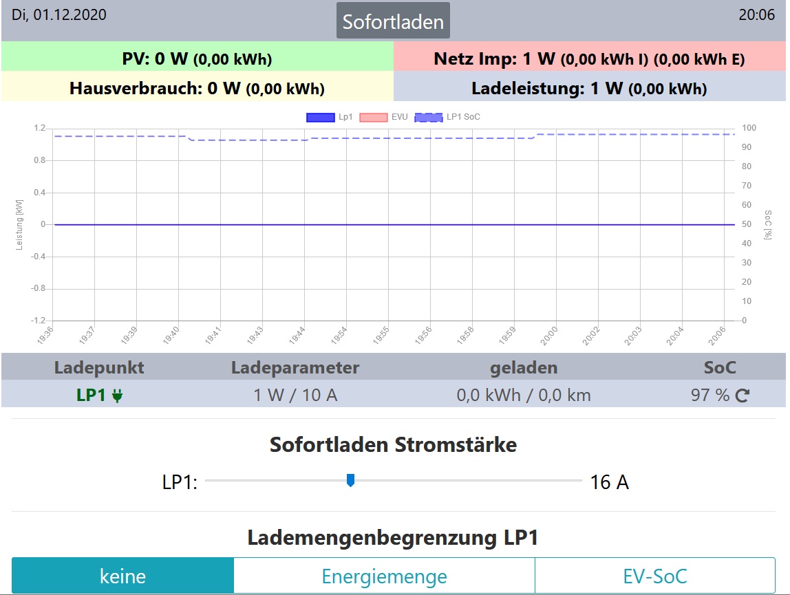 Das war's, sie lädt wieder mit 11 kW und zeigt alles an.Unter Einstellungen -> Modulkonfiguration die Ladepunktanbidung auf "openWB series 1/2 mit geeichtem Zähler Variante 1" konfigurieren, dann sollte es wieder stimmen.