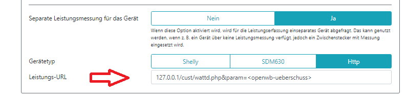 Oben bei Gerät "Http" auswählen, weiter unten dann "Separate Leistungsmessung" und als Gerät "Shelly".