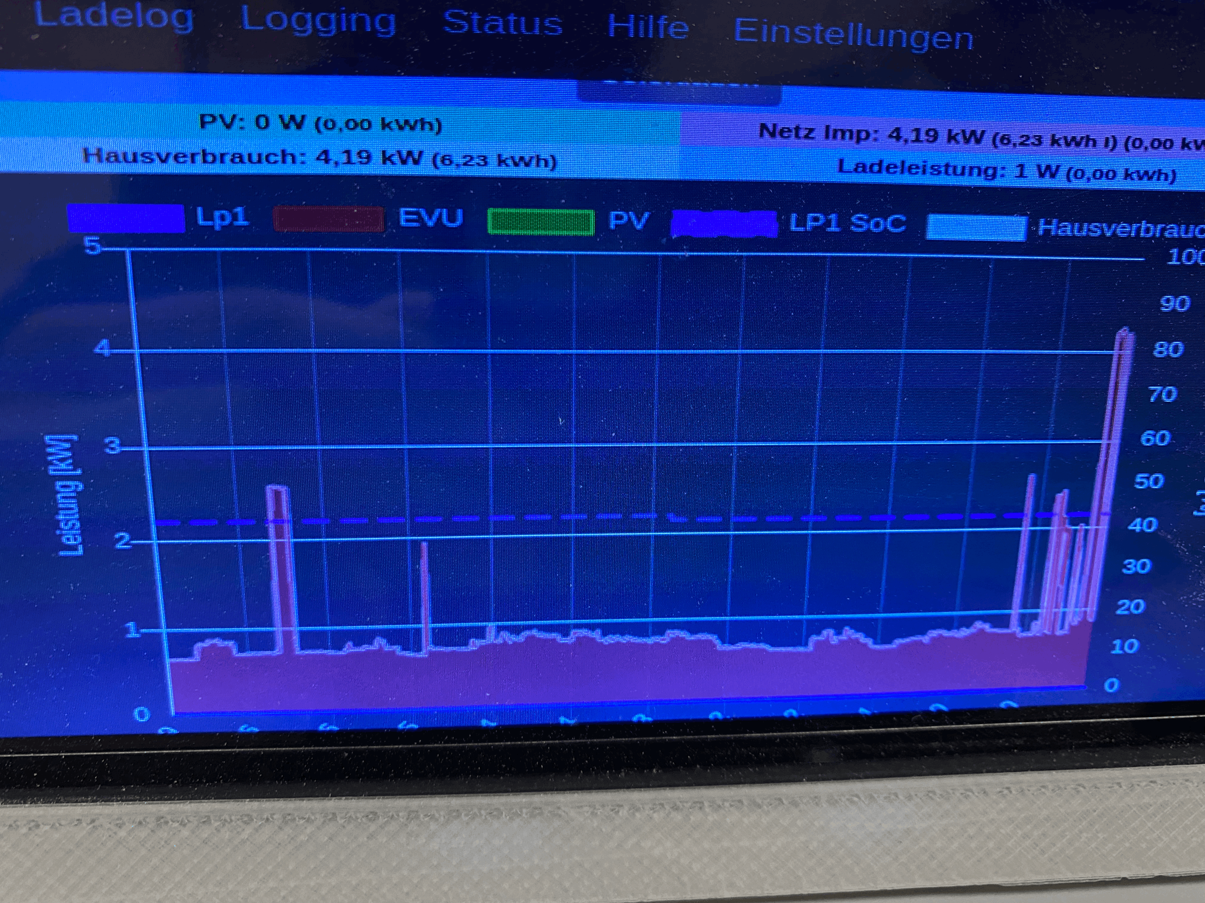 Seit ca. 3 Wochen wird eine Ladeleistung von 1W angezeigt, obwohl aktuell deutlich mehr Leistung aus dem Netz des EVU gezogen wird um das E-Fahrzeug zu Laden. Auch lässt die OpenWB nur noch eine Ladeleistung von 16A zu, obwohl alle möglichen Regler (Nachtladen, Tagladen, Start-Anzeige, usw.) auf 32A eingestellt sind. Anbei die Bilder im Anhang.