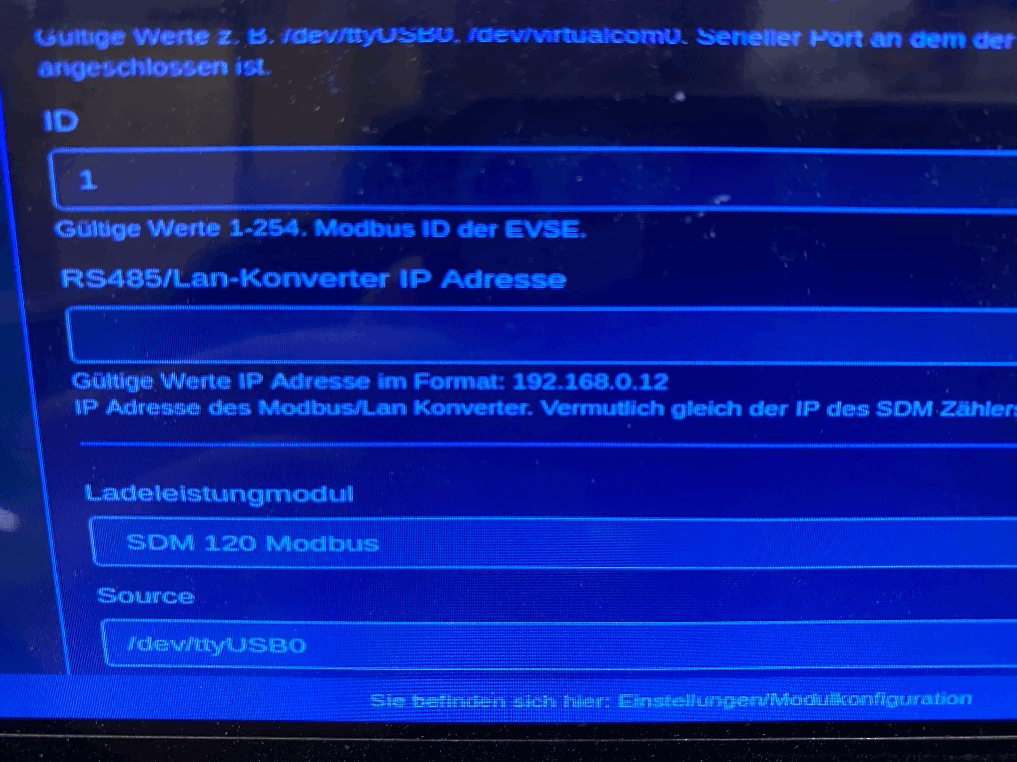 Entweder für ID Phase 2 / 3 254 eingeben oder als Ladeleistungsmodul den SDM630 wählen.