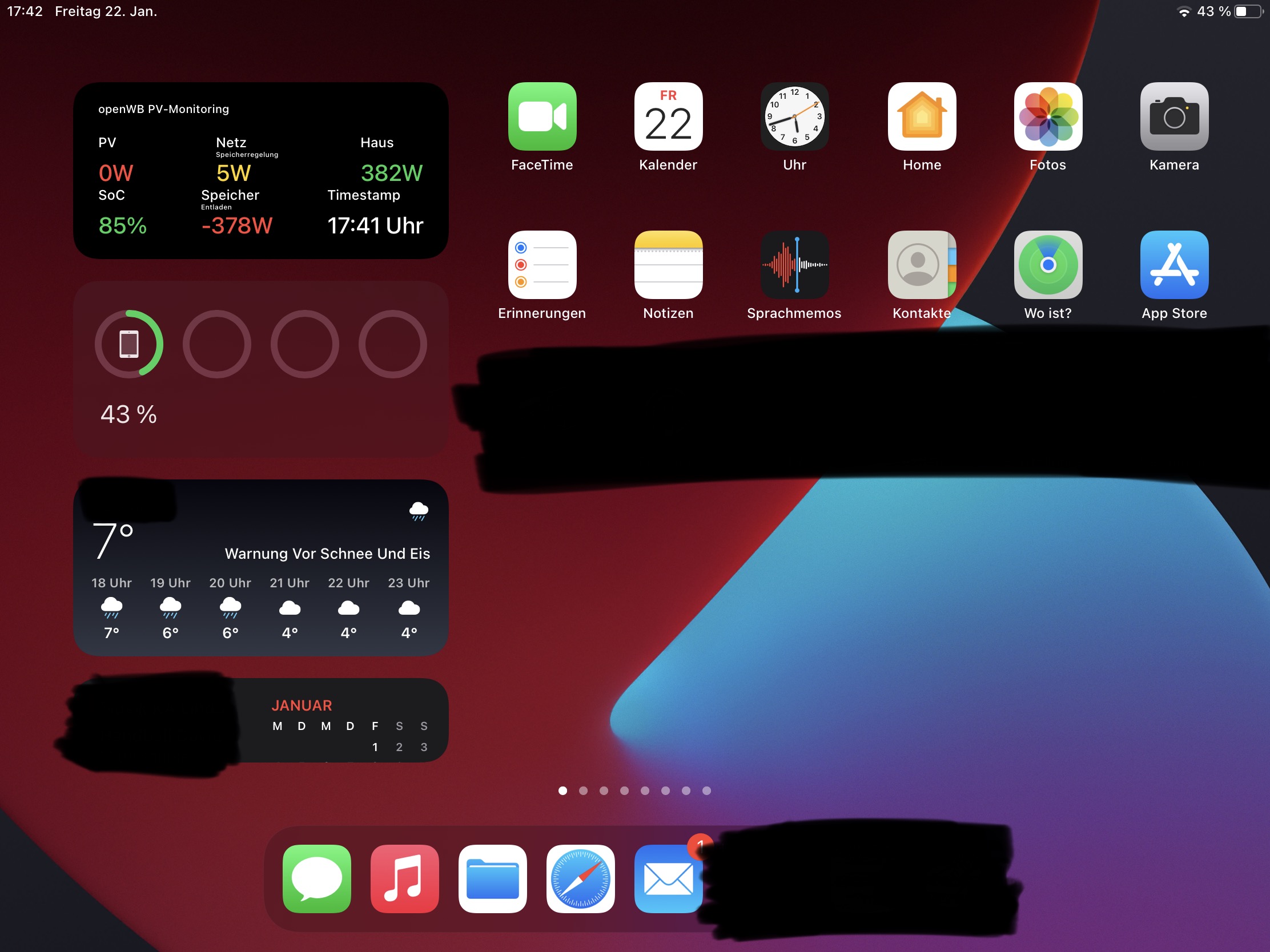 Ein anderer Ansatz, der mir aber erst gerade eingefallen ist, wäre es natürlich mit der Scriptable-App direkt auf die Ramdisk-Files zuzugreifen und auch alle Berechnungen in der Scriptable-App vorzunehmen. Damit müsste man an der OpenWB gar nichts änderte und nur die App einrichten, dass wäre dann auf jeden Fall auch interessierter-Laie tauglich. Muss ich mal mal anschauen ob das mit Scriptable so einfach geht.