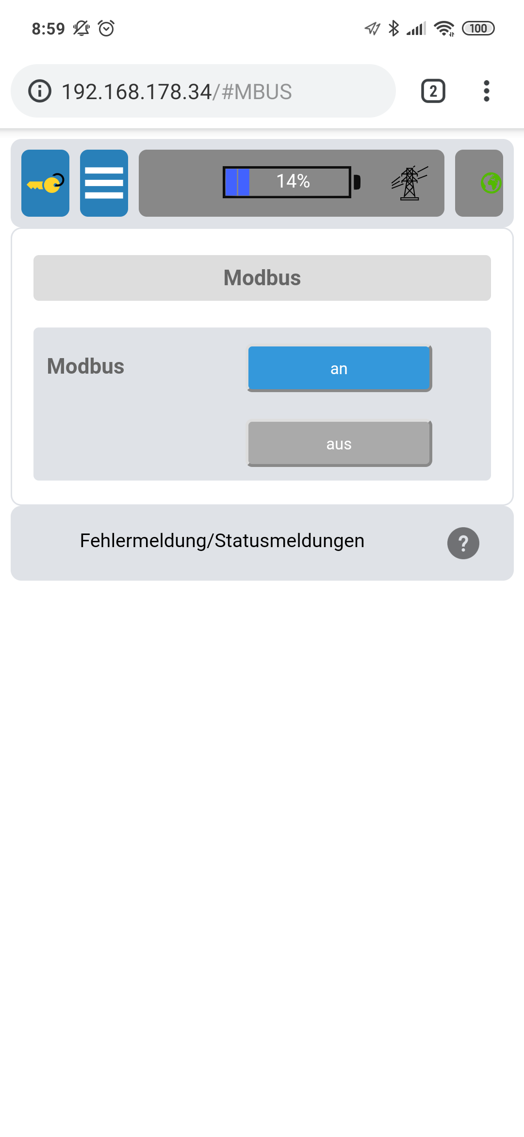Laut Datenblatt kann er ModbusTCP, Frage nur ob die Register da andere sind bzw. ob es aktiviert ist