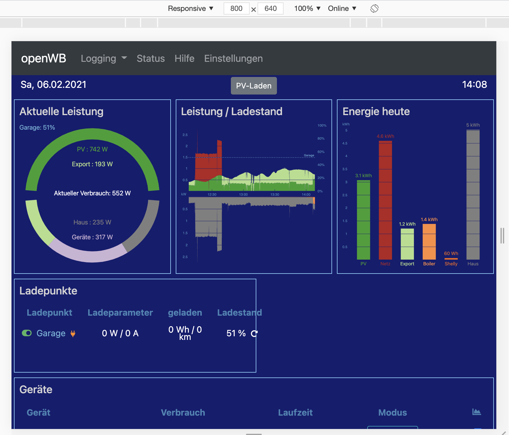 So, es funktioniert nun gut im Browser, ich habe nun einen Pull-Request eingereicht, damit ich es auf dem Display meiner openWB testen kann.
