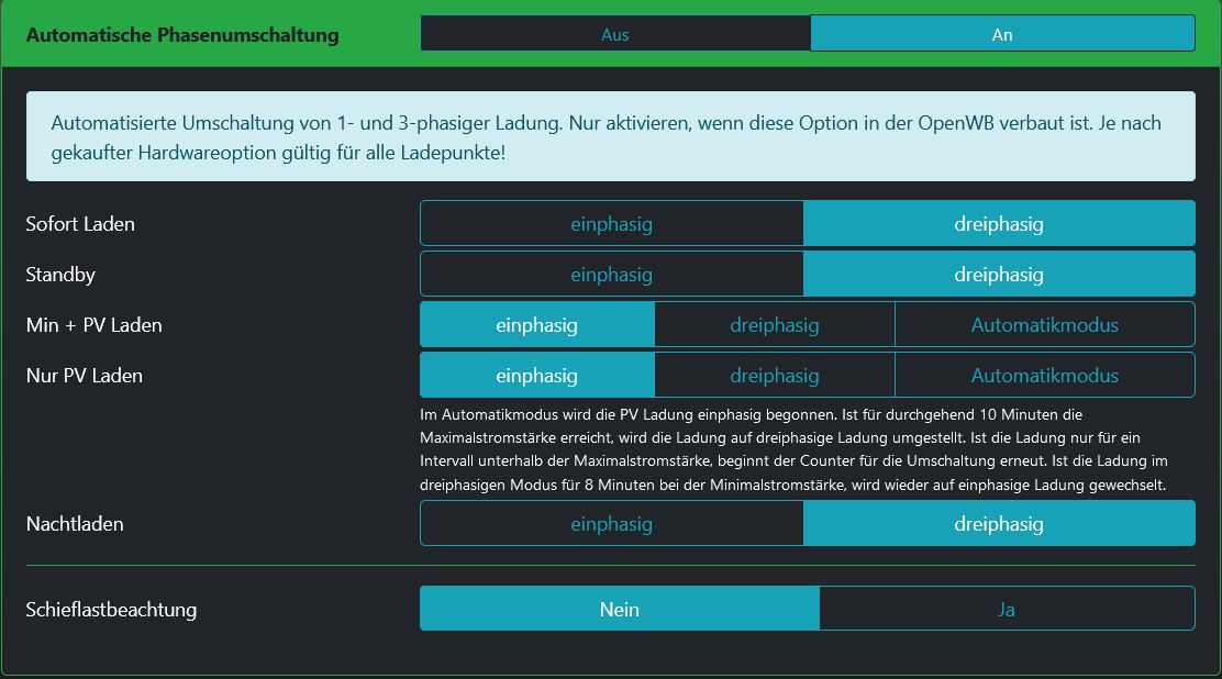 DAS sollte viell. auf der Webseite ausführlicher beschrieben sein, dass nicht nur die automatische Umschaltung betroffen ist, sondern die WB dann auch _nur_ noch 3-phasig lädt!
