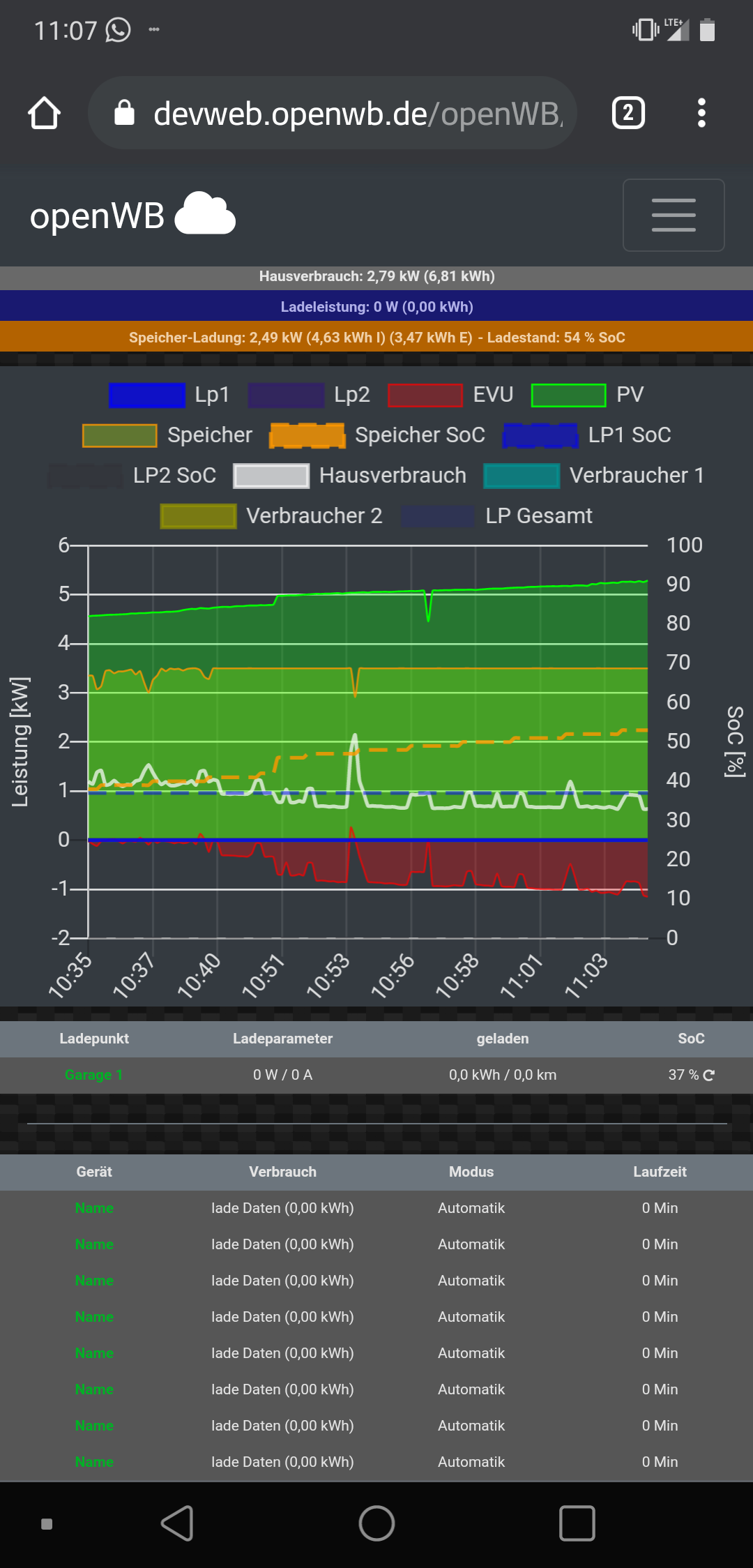 Zum anderen sehe ich im der Legende alle möglichen Datenpunkte, obwohl diese nicht vorhanden sind. Also Speicher, Verbraucher etc. Das ist bei der openWb cloud nicht so.