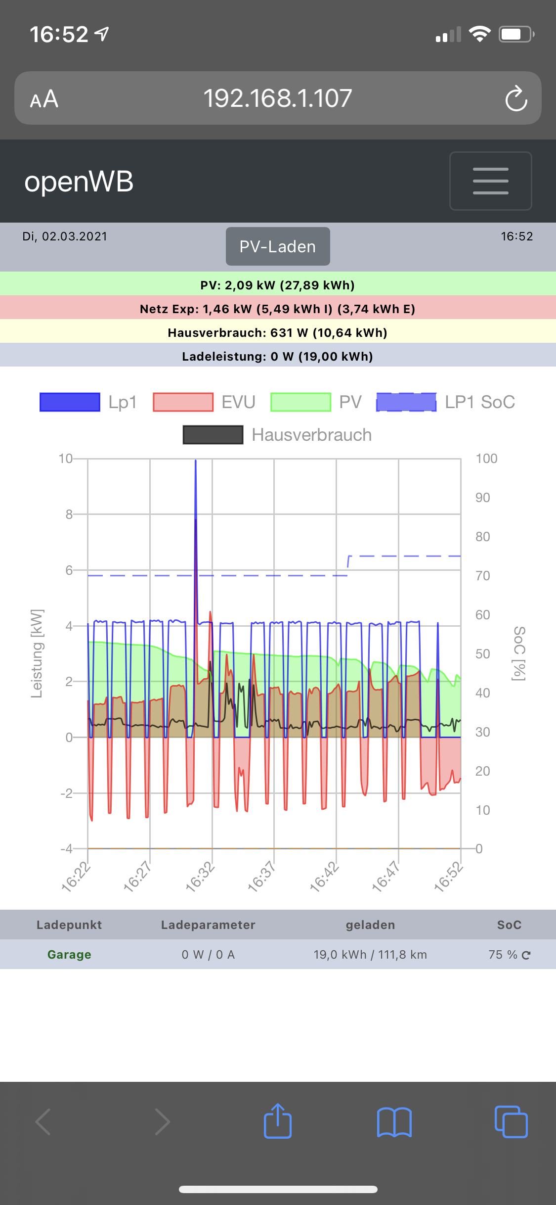 Er fängt immer wieder an zu laden mit ca.4kw obwohl keine 4kw an der PV Anlage anliegt.