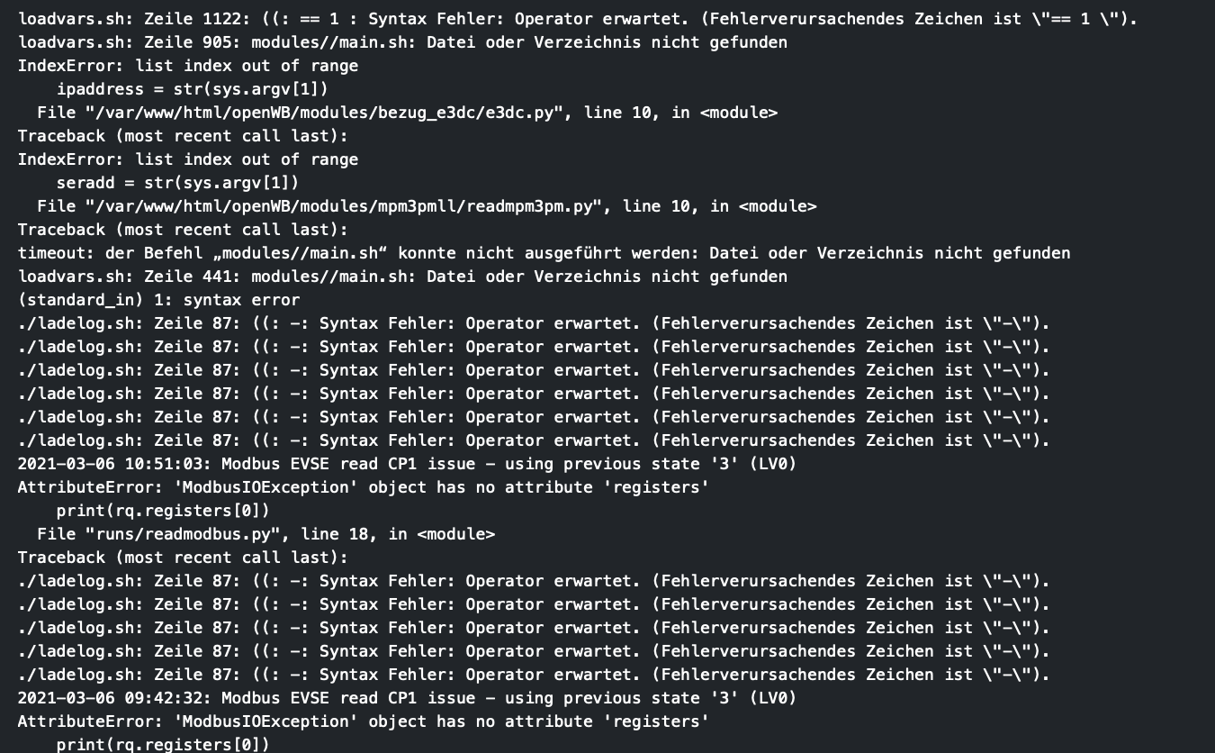Hardwareprobleme bitte über die Funktion Debug Daten senden mitteilen oder per Mail an support@openwb.de