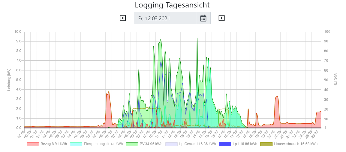 Auch die Übersicht des Hausverbrauchs ist toll. Ich habe gleich mal die Heizzeiten unserer Wärmepumpe so angepasst, dass sie nur noch tagsüber läuft und in der Nacht das Haus den "Wärmevorrat" im Fußboden verbraucht.