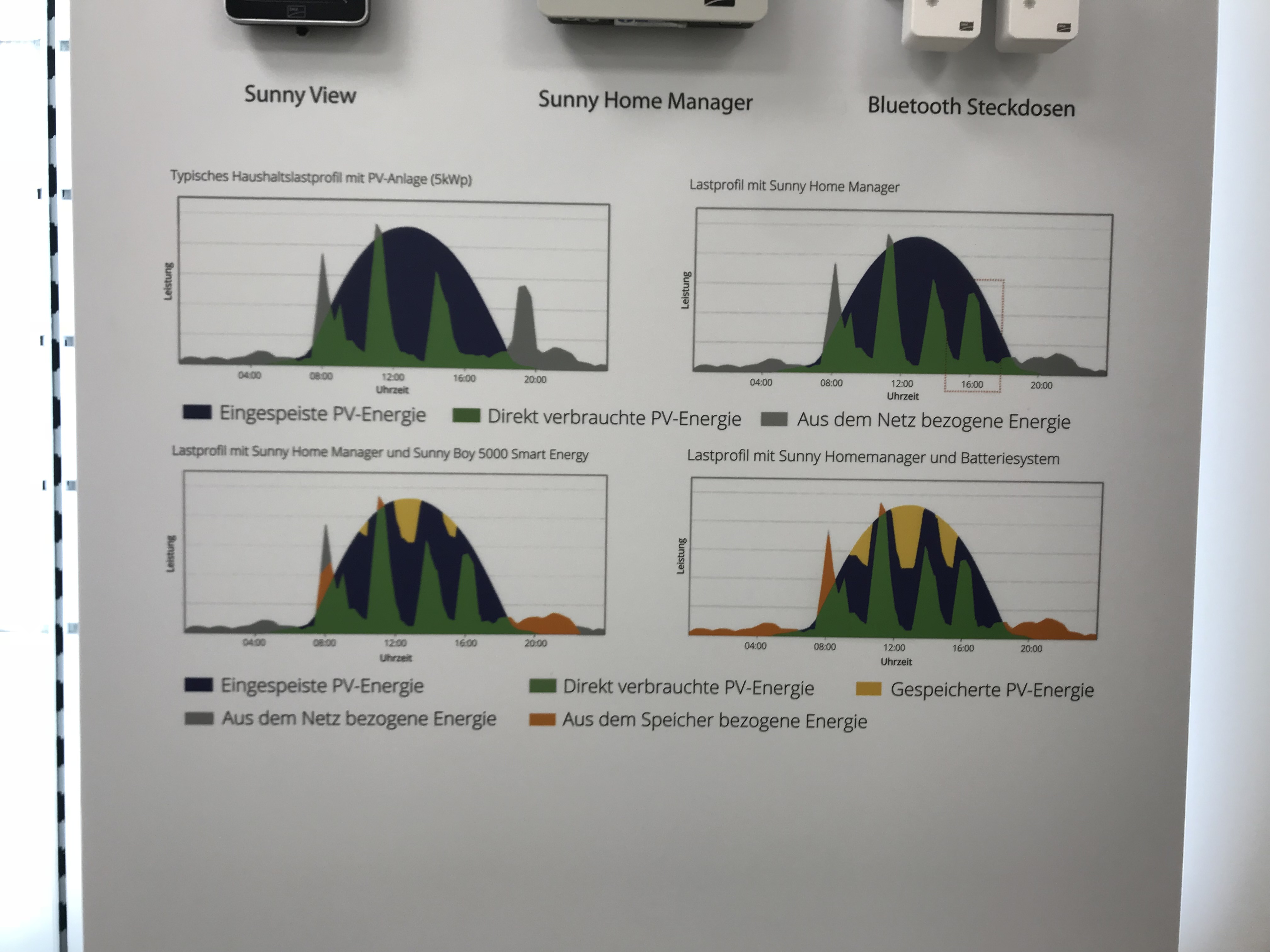 Hier die Bilder vom Sunny Home Manager, wobei ich die Live Darstellung von OpenWB für eine Tagesansicht besser fände als diese. Diese Bilder sollen nur zeigen, dass hier Leistung über Zeit dargestellt werden: